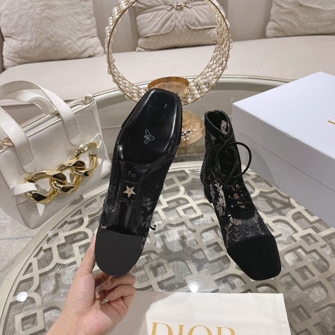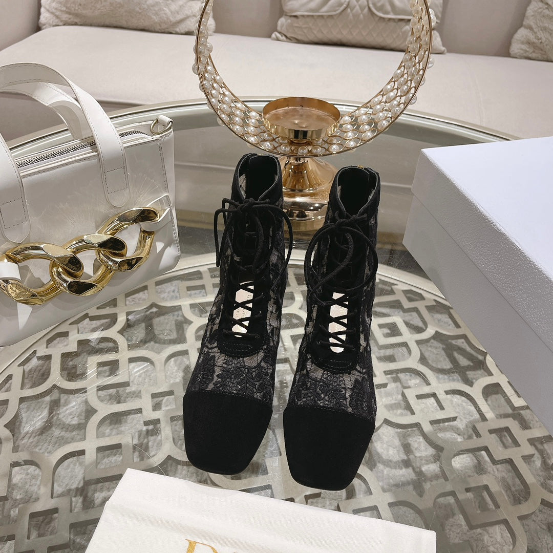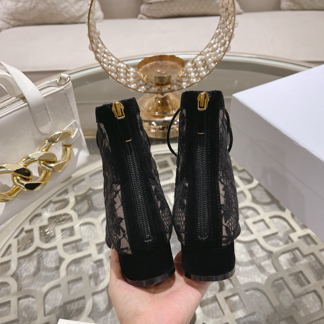 NAUGHTILY-D ANKLE BOOT BLACK TRANSPARENT MESH AND SUEDE EMBROIDERED WITH ROSES MOTIF 35 MM
