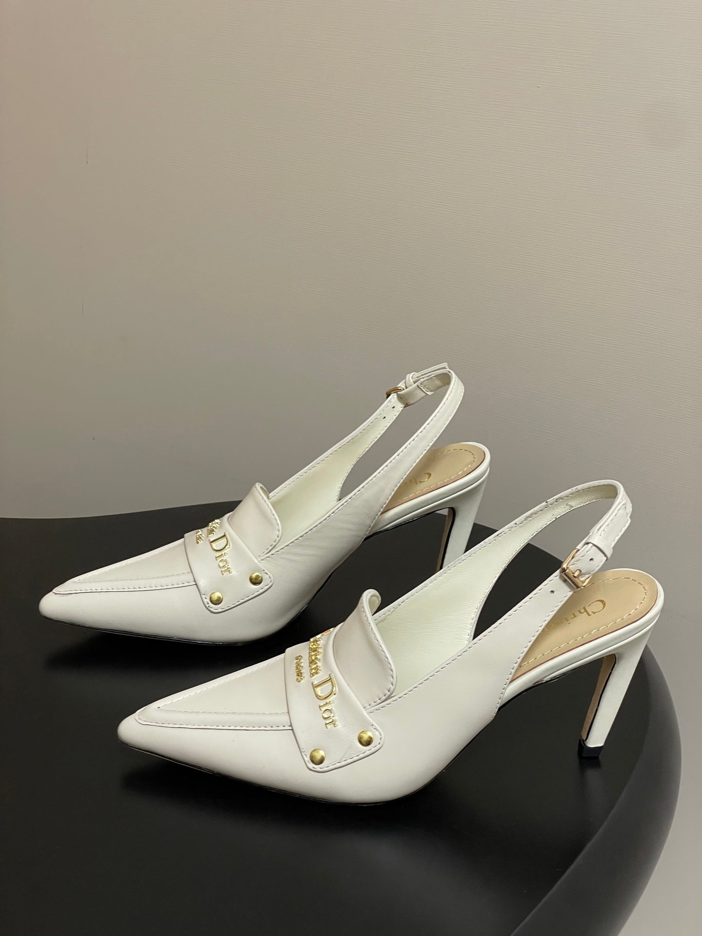 DIOR 25S BOY SLINGBACK HIGH HEELS 85 MM IN WHITE LAMBSKIN