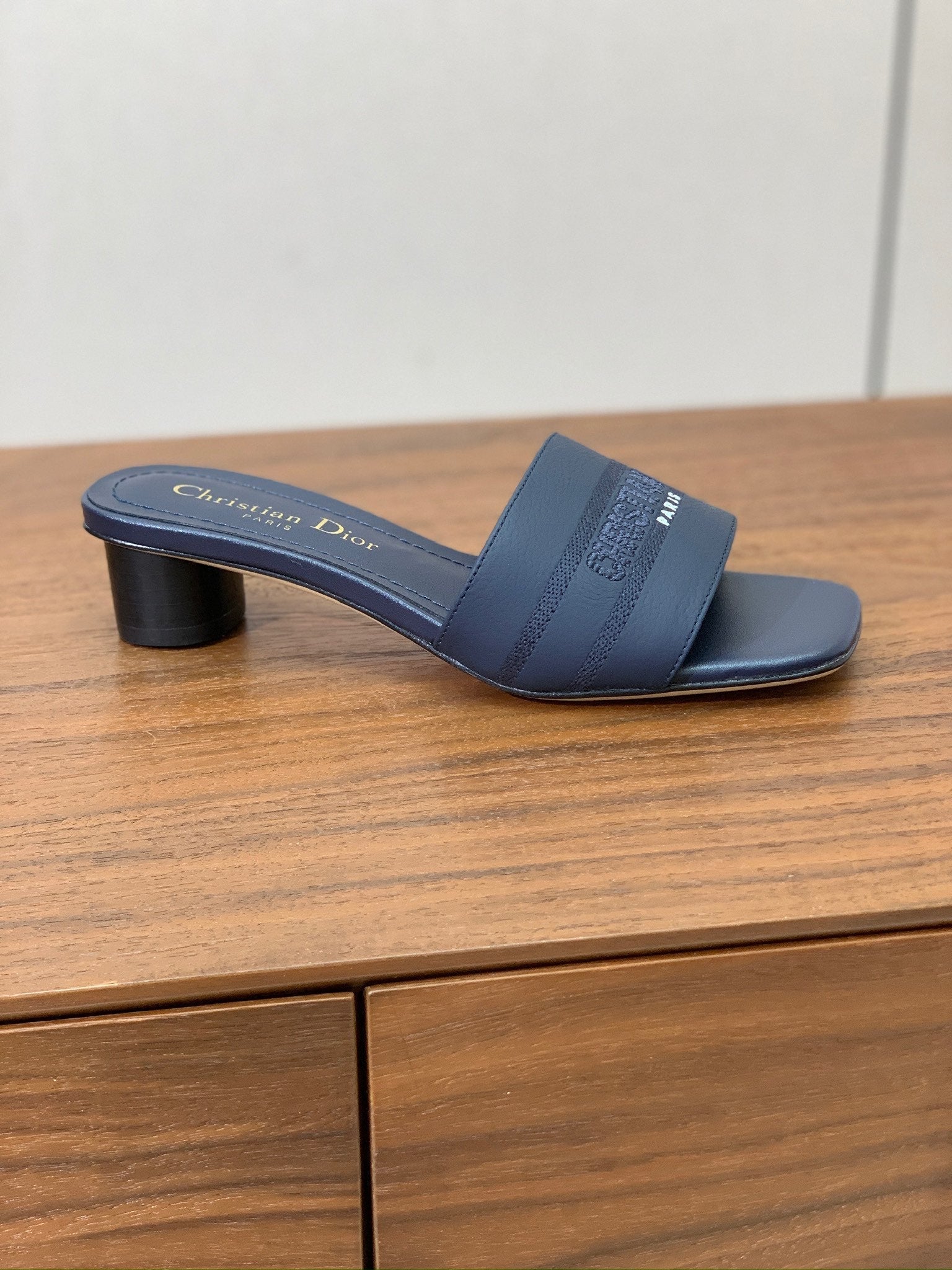 DIOR 25S HIGH-HEEL SANDALS 40 MM IN DEEP NAVY BLUE CALFSKIN