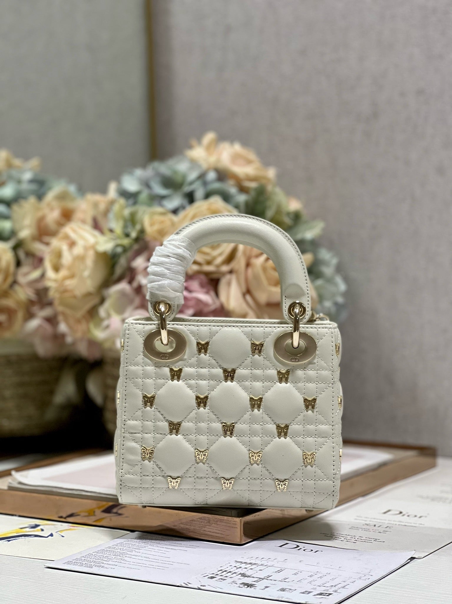 MINI LADY 17 BUTTERFLY STUD WHITE LAMBSKIN