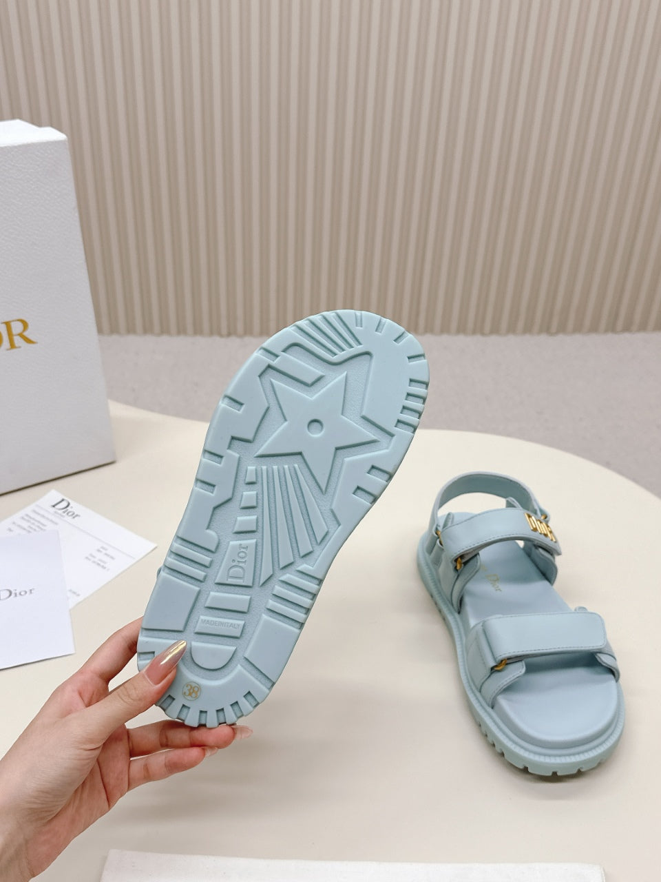 DIOR BACK-STRAP SANDALS 25S IN PASTEL BLUE CALFSKIN WITH GOLD HARDWARE