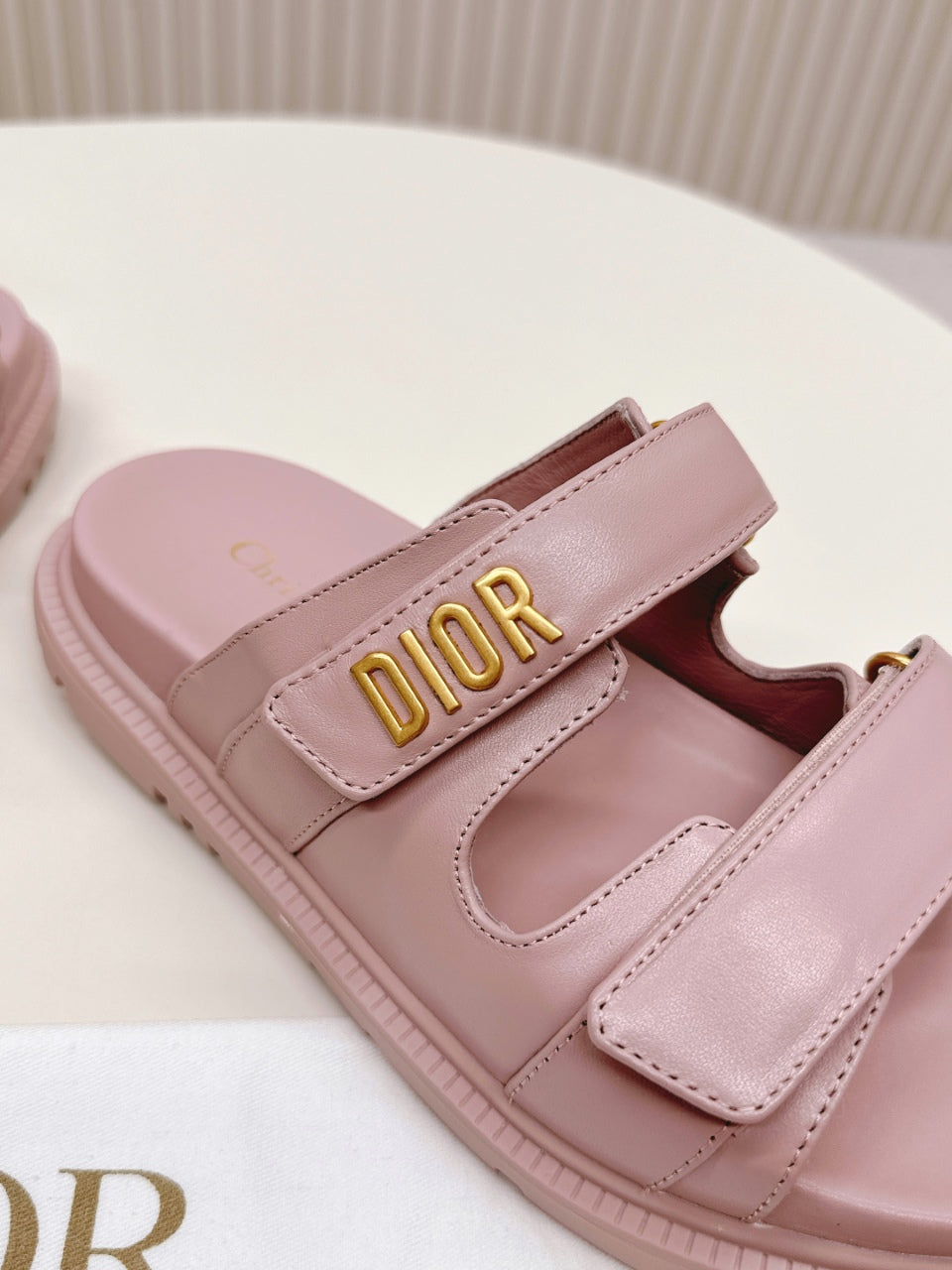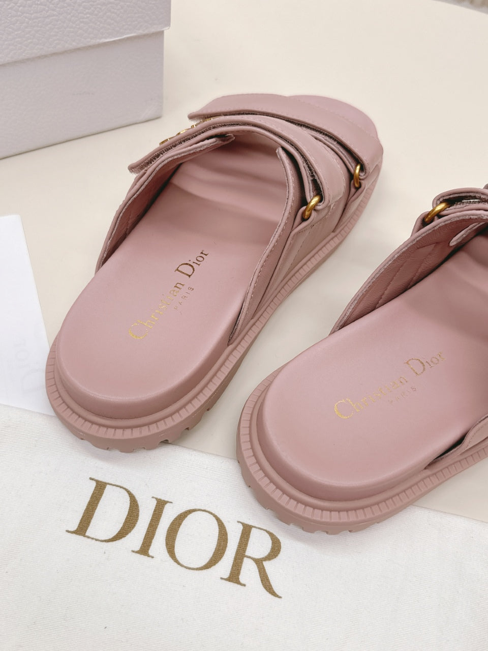 DIOR CLASSIC DOUBLE-STRAP SLIDES 25S IN BABY PINK CALFSKIN