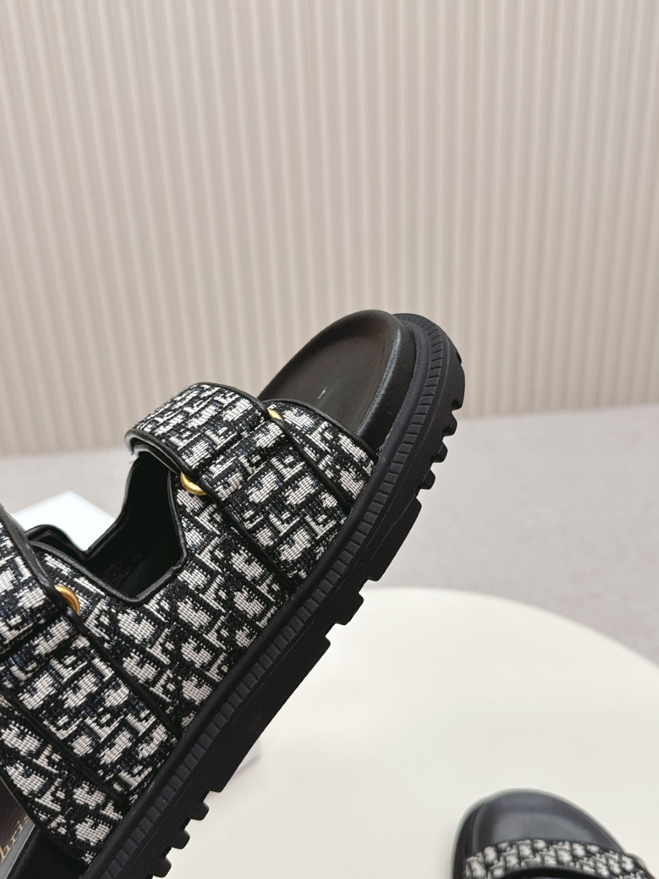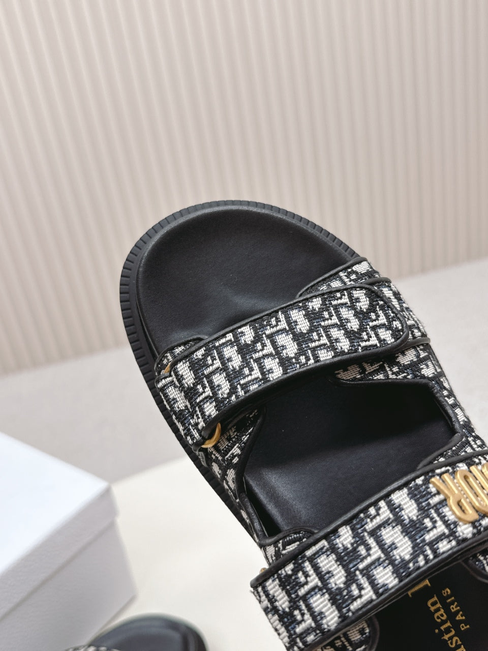 DIOR CLASSIC DOUBLE-STRAP SLIDES 25S IN BLACK FABRIC AND CALFSKIN