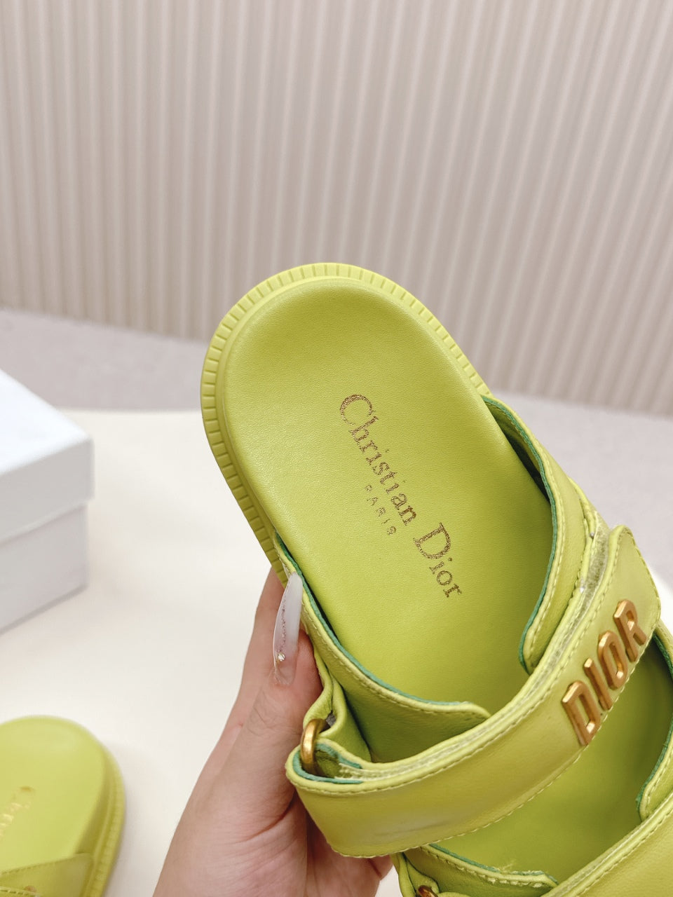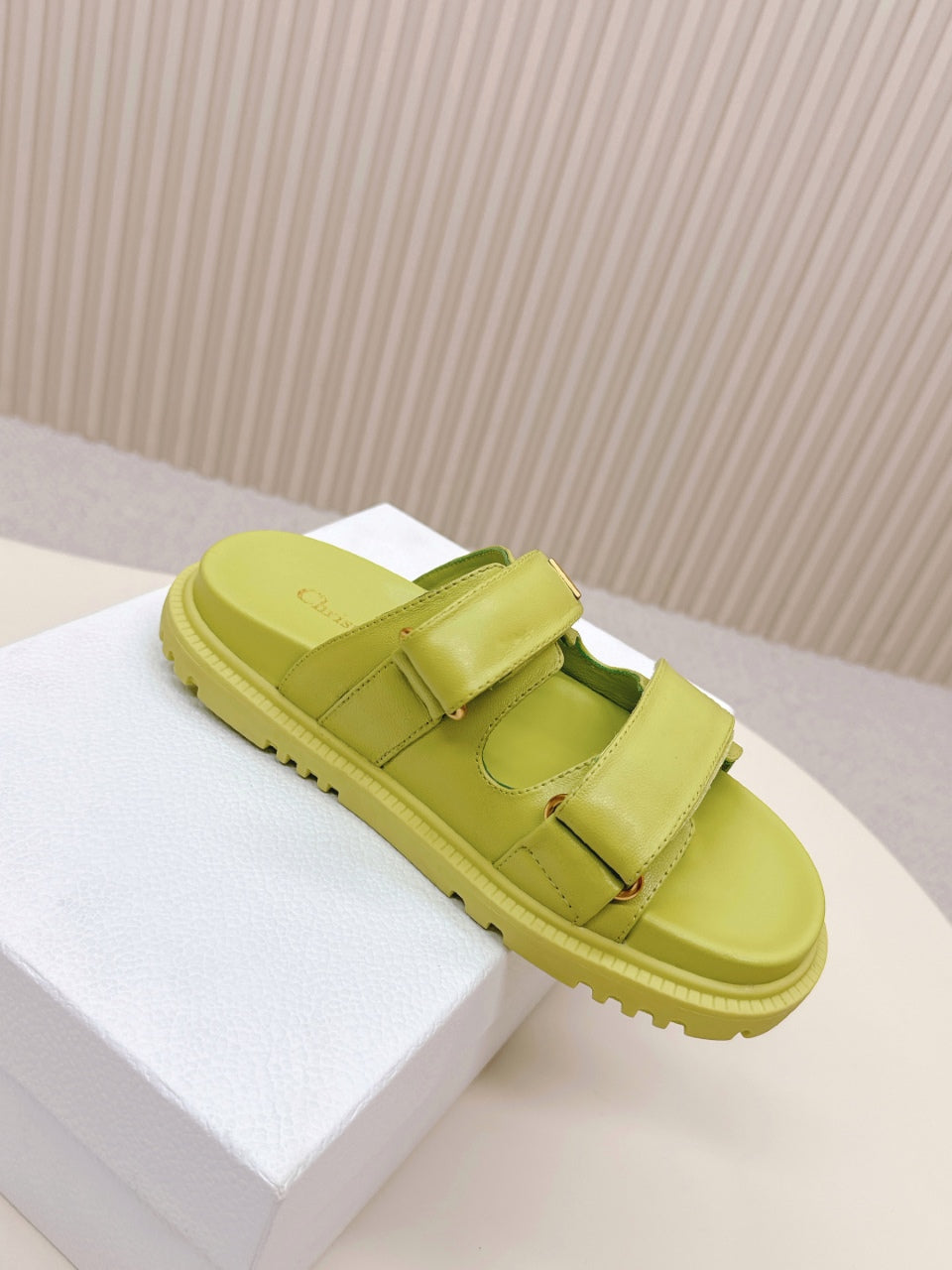 DIOR CLASSIC DOUBLE-STRAP SLIDES 25S IN OLIVE YELLOW CALFSKIN