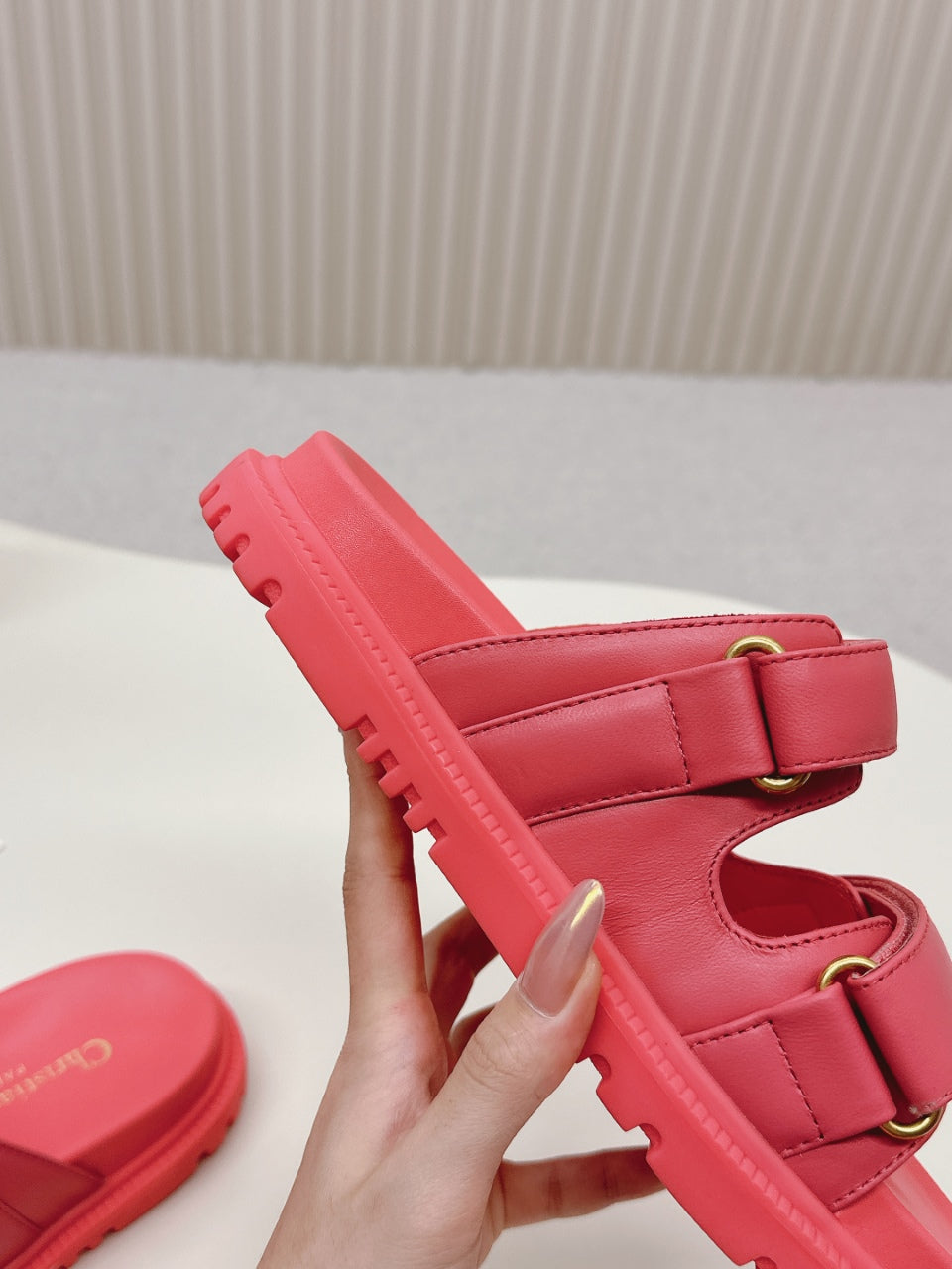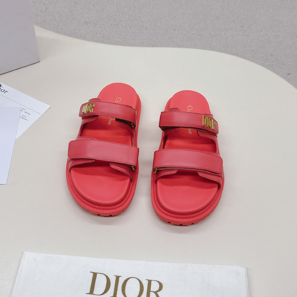 DIOR CLASSIC DOUBLE-STRAP SLIDES 25S IN STRAWBERRY PINK CALFSKIN