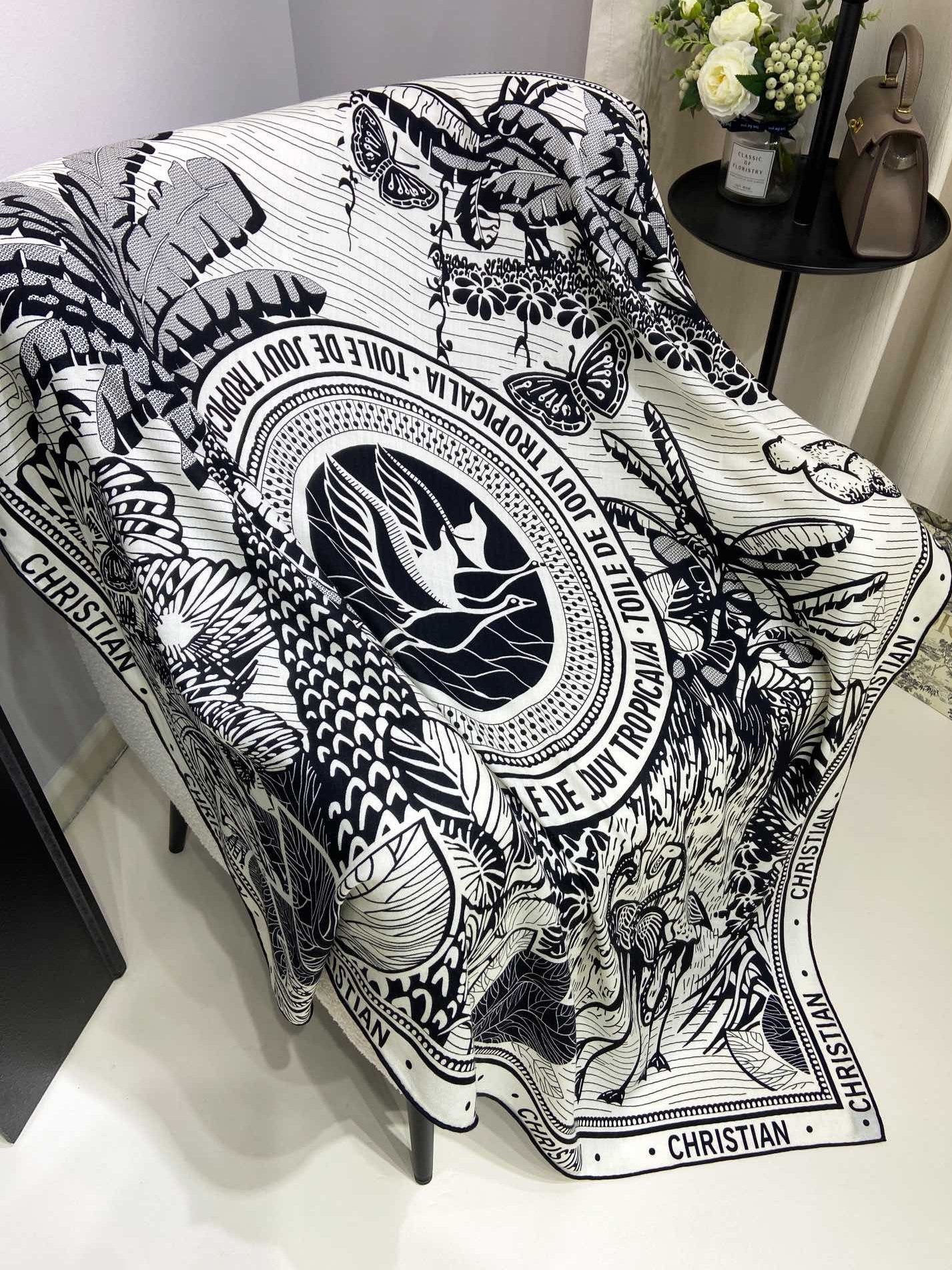 SQUARE SCARF 140 CM IN BLACK MIX WHITE MONOGRAM WOOL AND SILK 415111