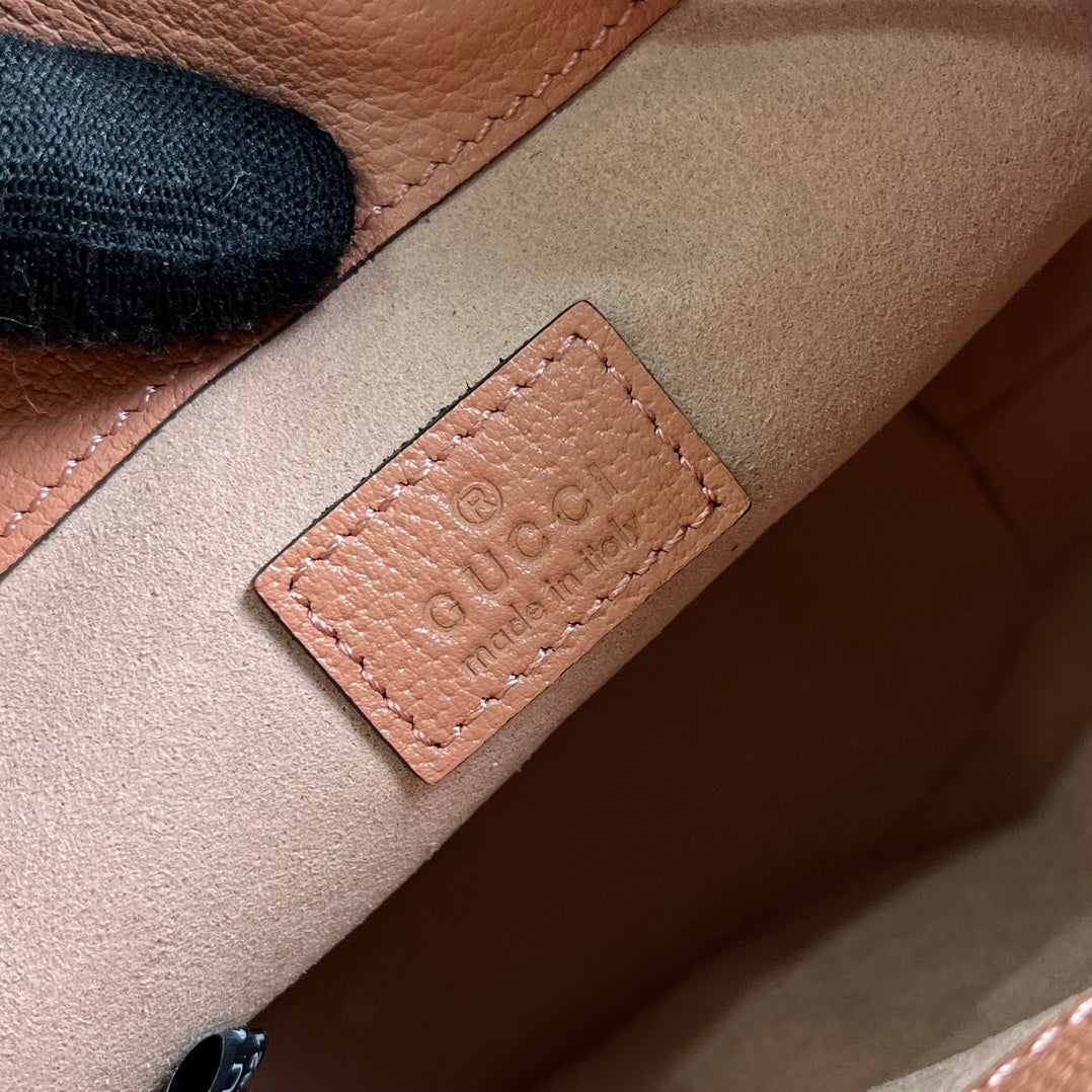 GG OPHIDIA MINI 19 BUCKET LIGHT PINK CANVAS AND CALFSKIN