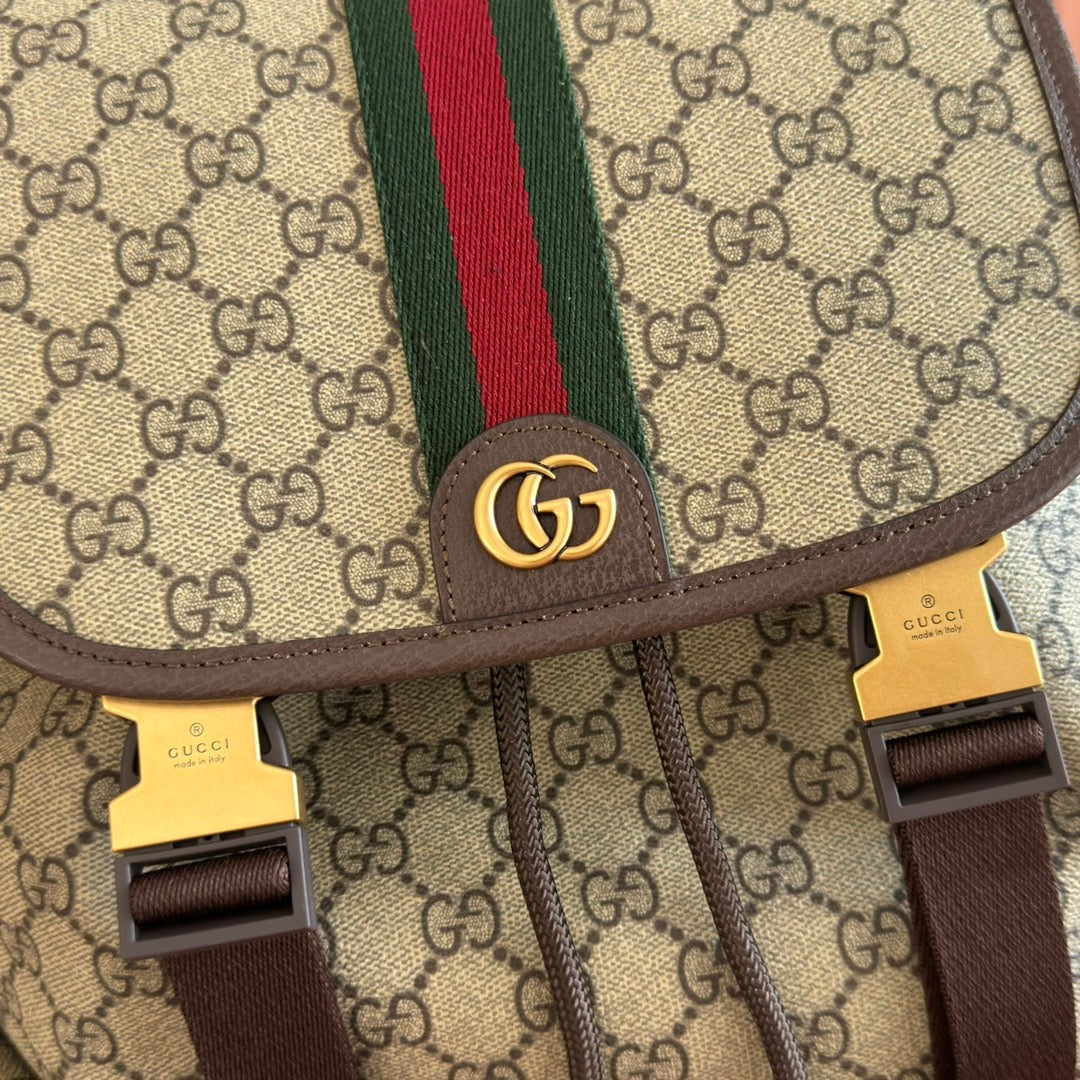 GUCCI 26S OPHIDIA LARGE BACKPACK 46 IN BEIGE AND BROWN CANVAS