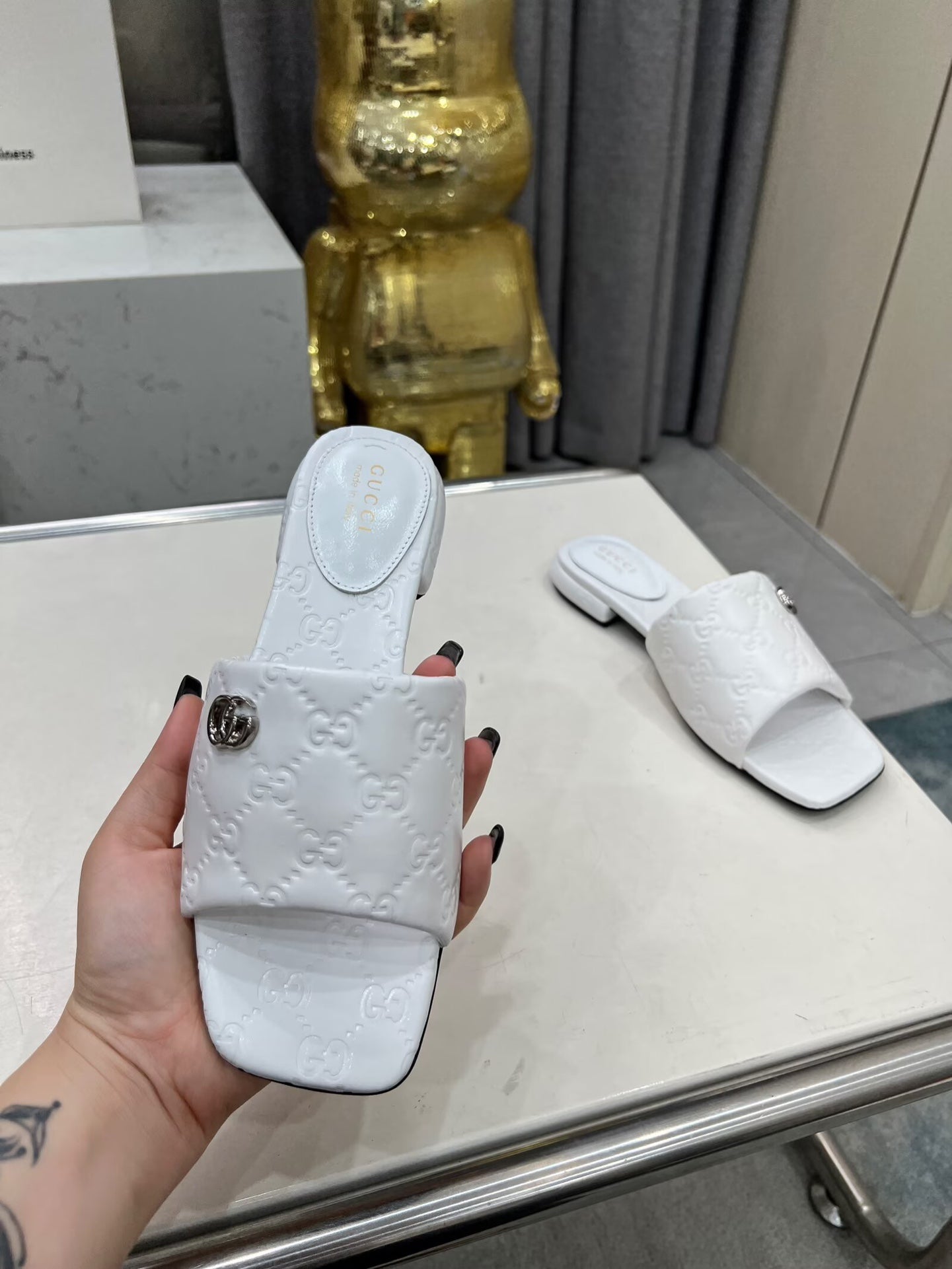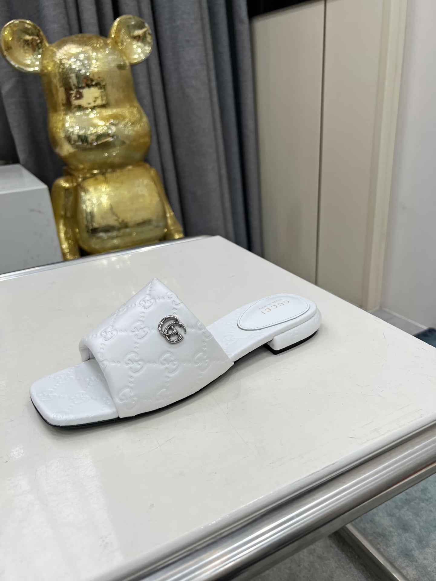 GG CASUAL SLIPPERS IN WHITE CALFSKIN LOGO EMBOSSING