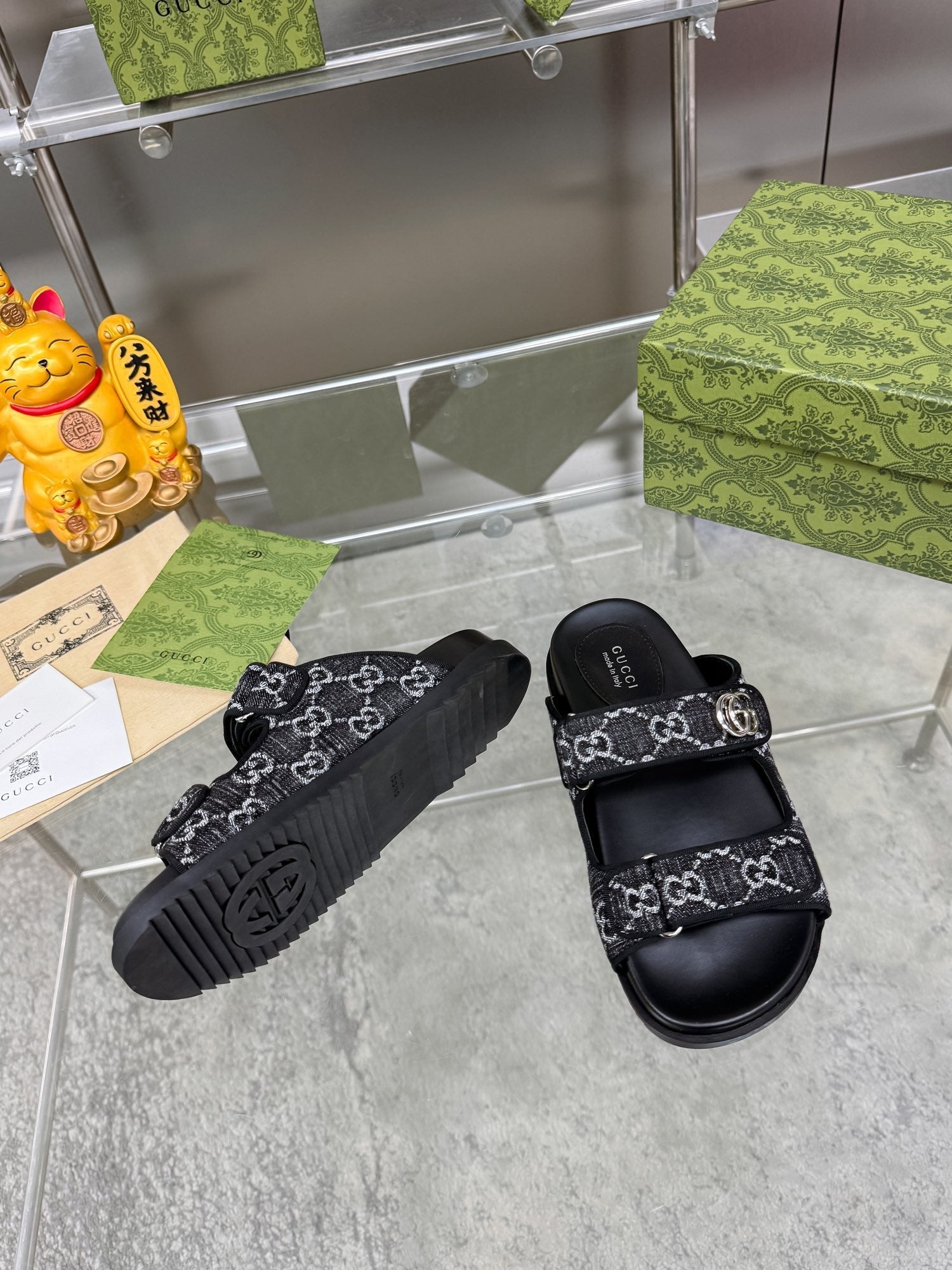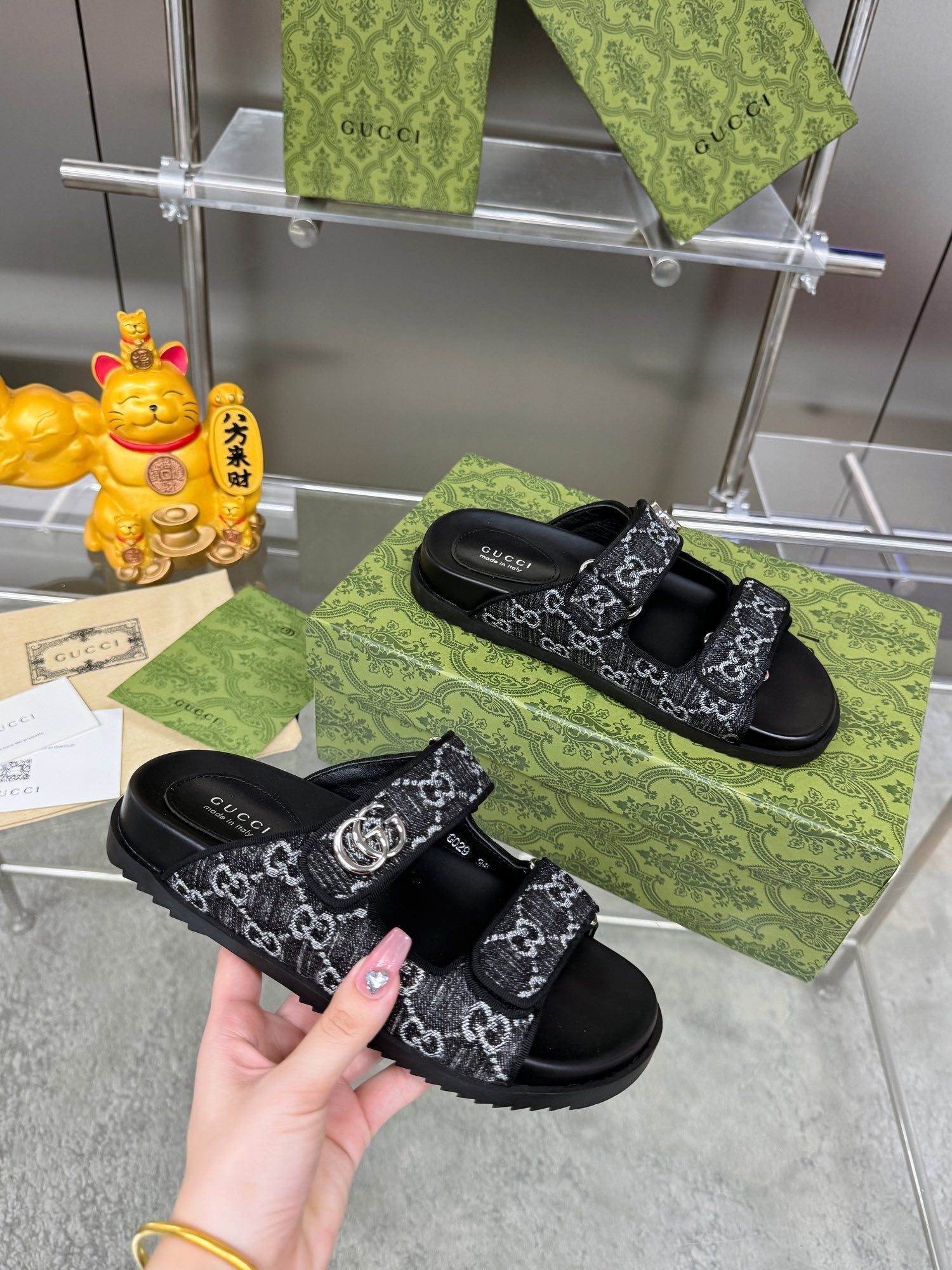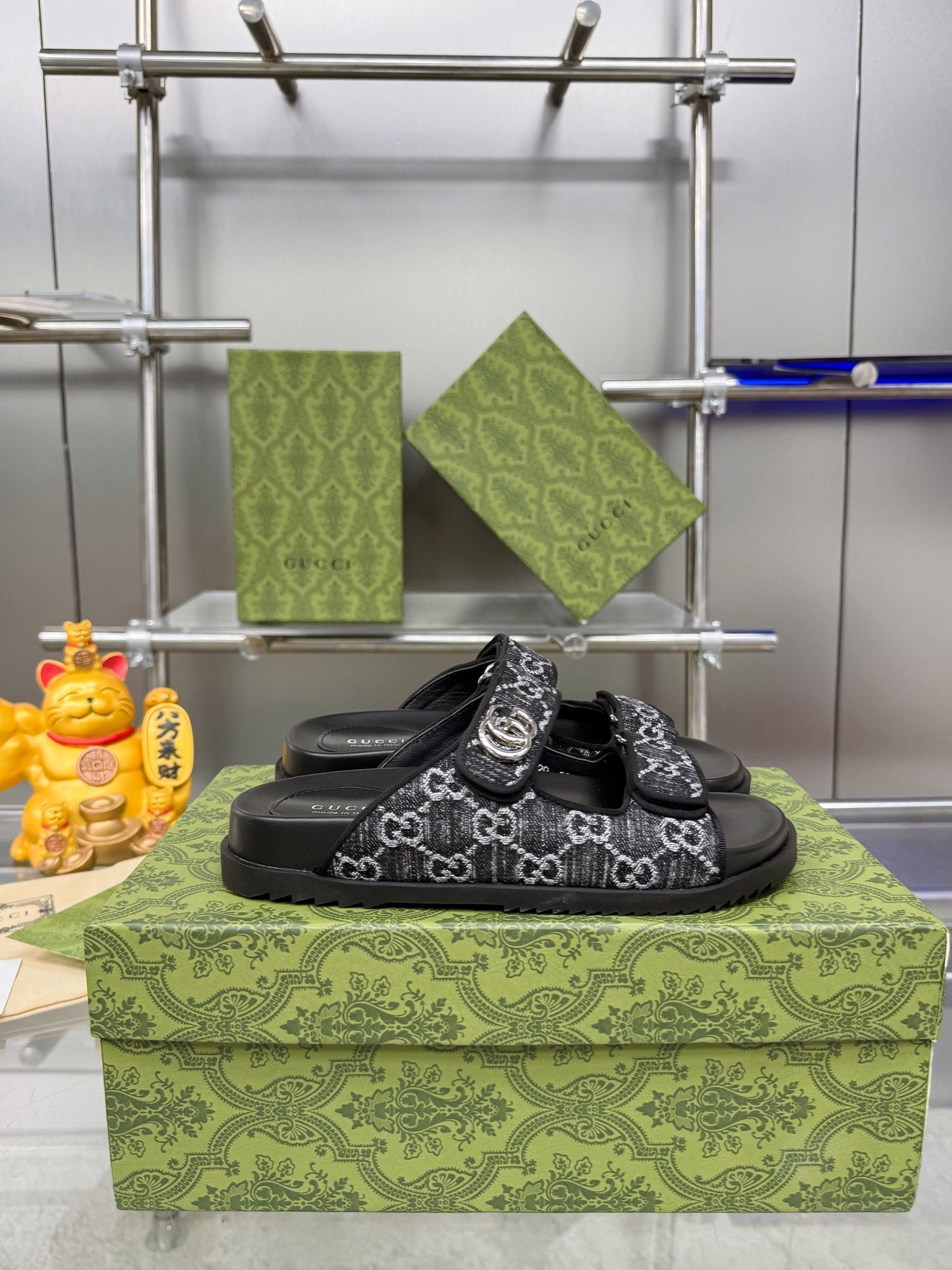 GG SANDALS IN BLACK FABRIC AND CALFSKIN WITH SILVER HARDWARE