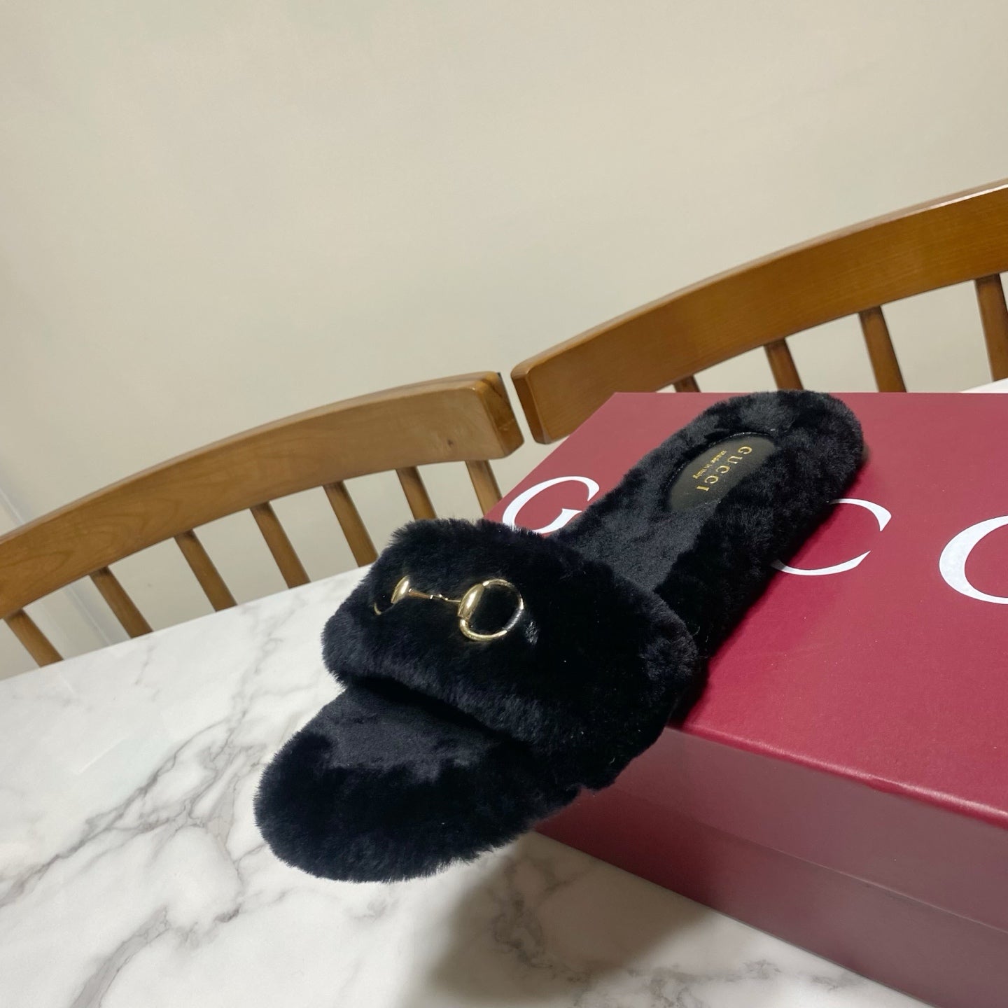 GUCCI 26S HORSEBIT MULES IN BLACK SHEARLING