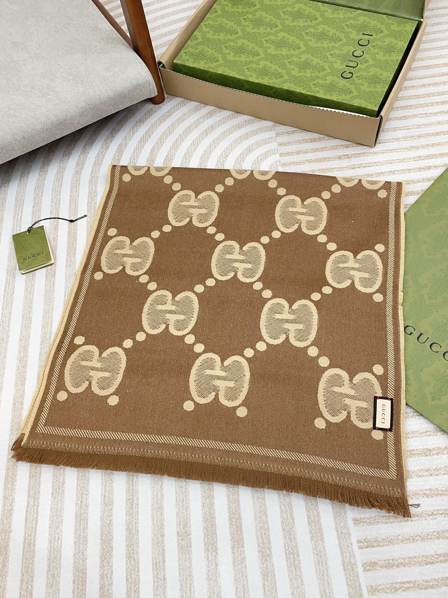 DOUBLE-SIDED SCARF 200 CM IN COFFEE AND TAN BROWN WOOL AND SILK 398287