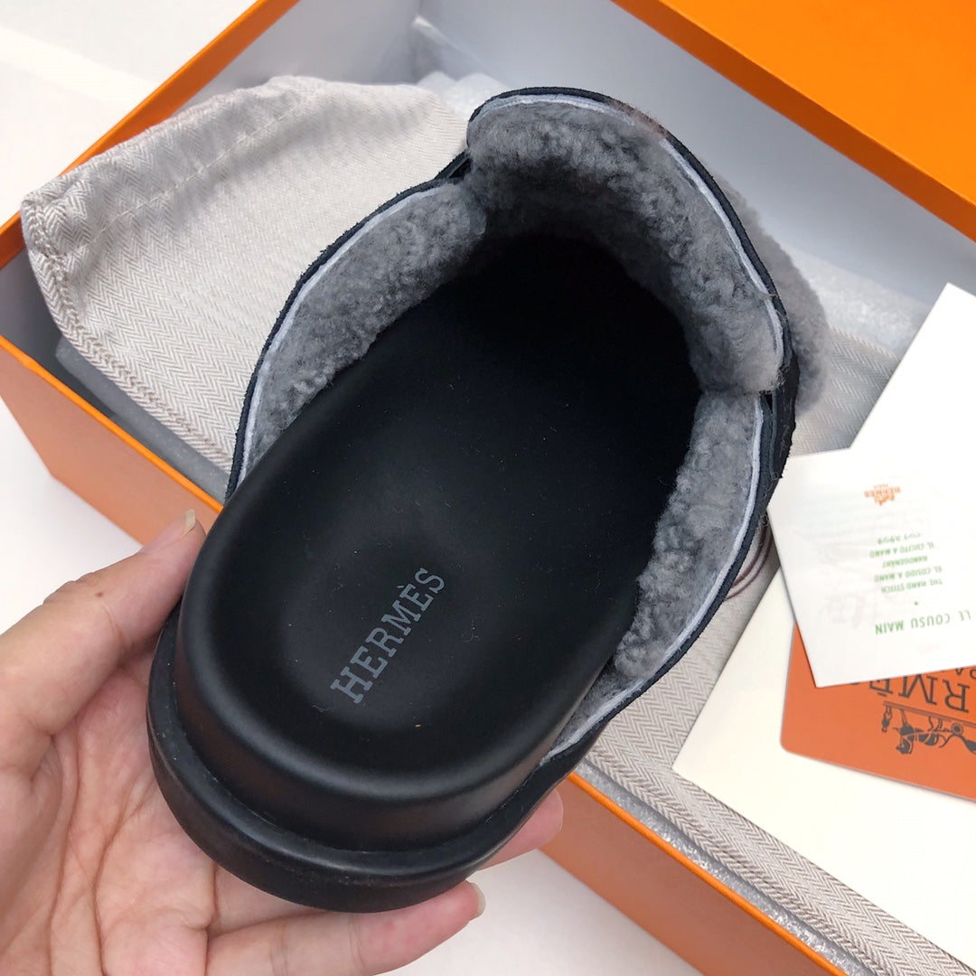 GO MULE IN BLACK SUEDE ATTACH LIGHT GRAY FLEECE