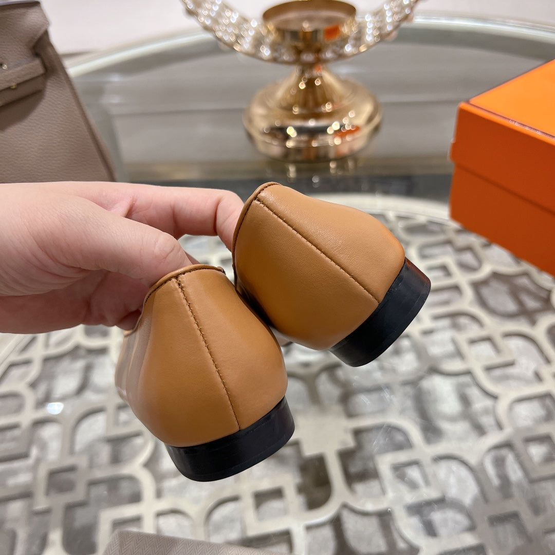 H - BUCKLE BALLET LIGHT BROWN CALFSKIN
