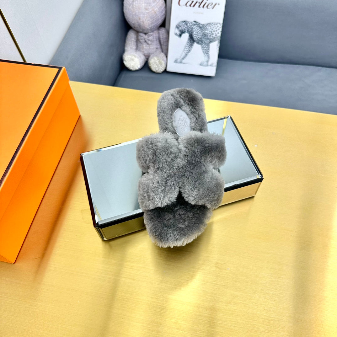 0RAN SHEARLING SANDALS SMOKE GRAY