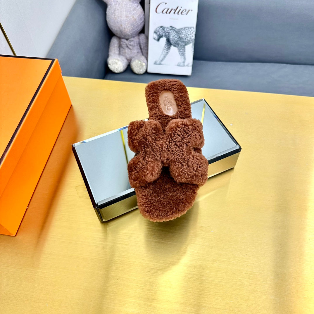 0RAN SHEARLING SANDALS UMBER BROWN