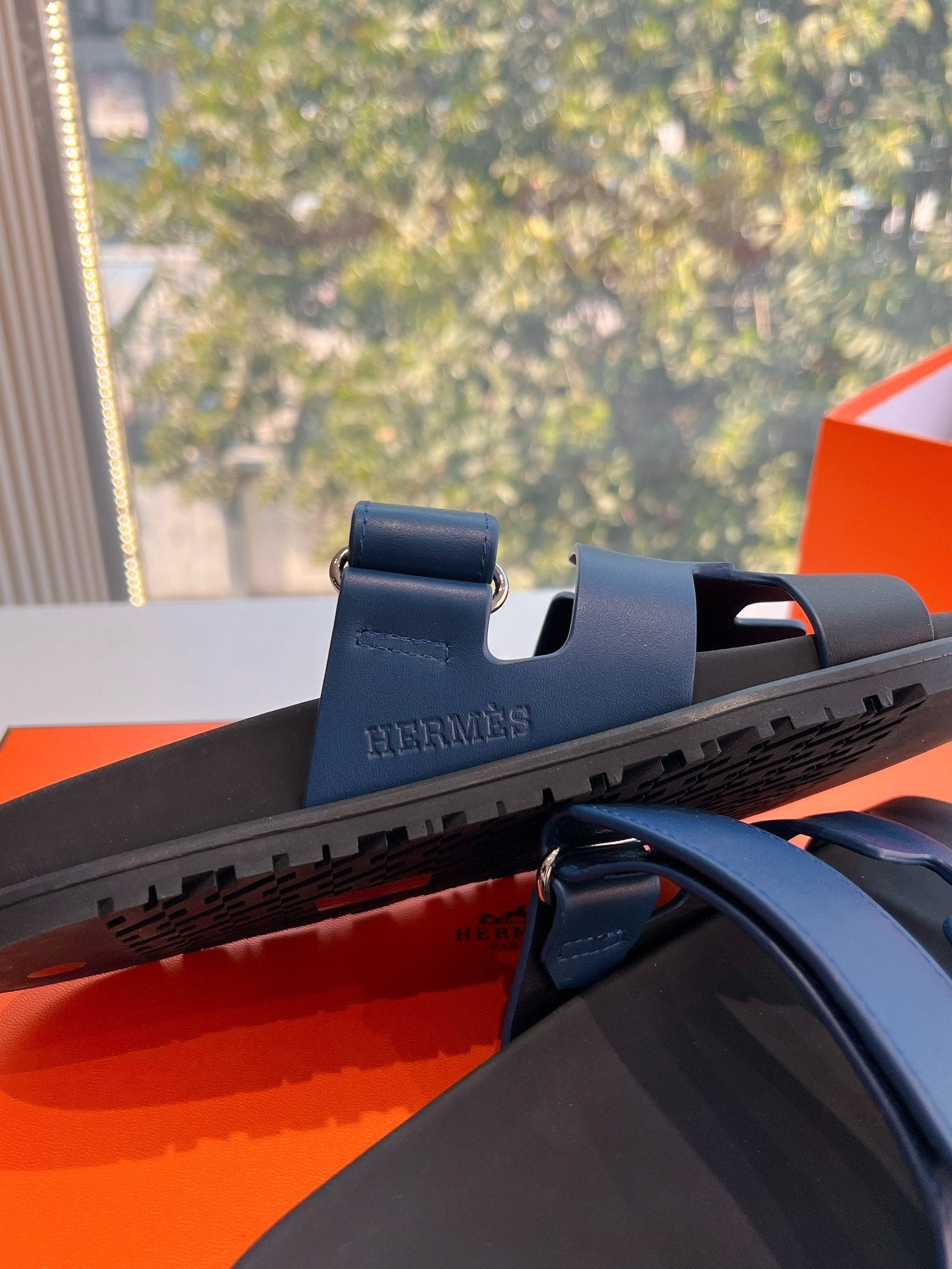 CHYPRE SANDAL IN AEGEAN BLUE MIX BLACK CALFSKIN