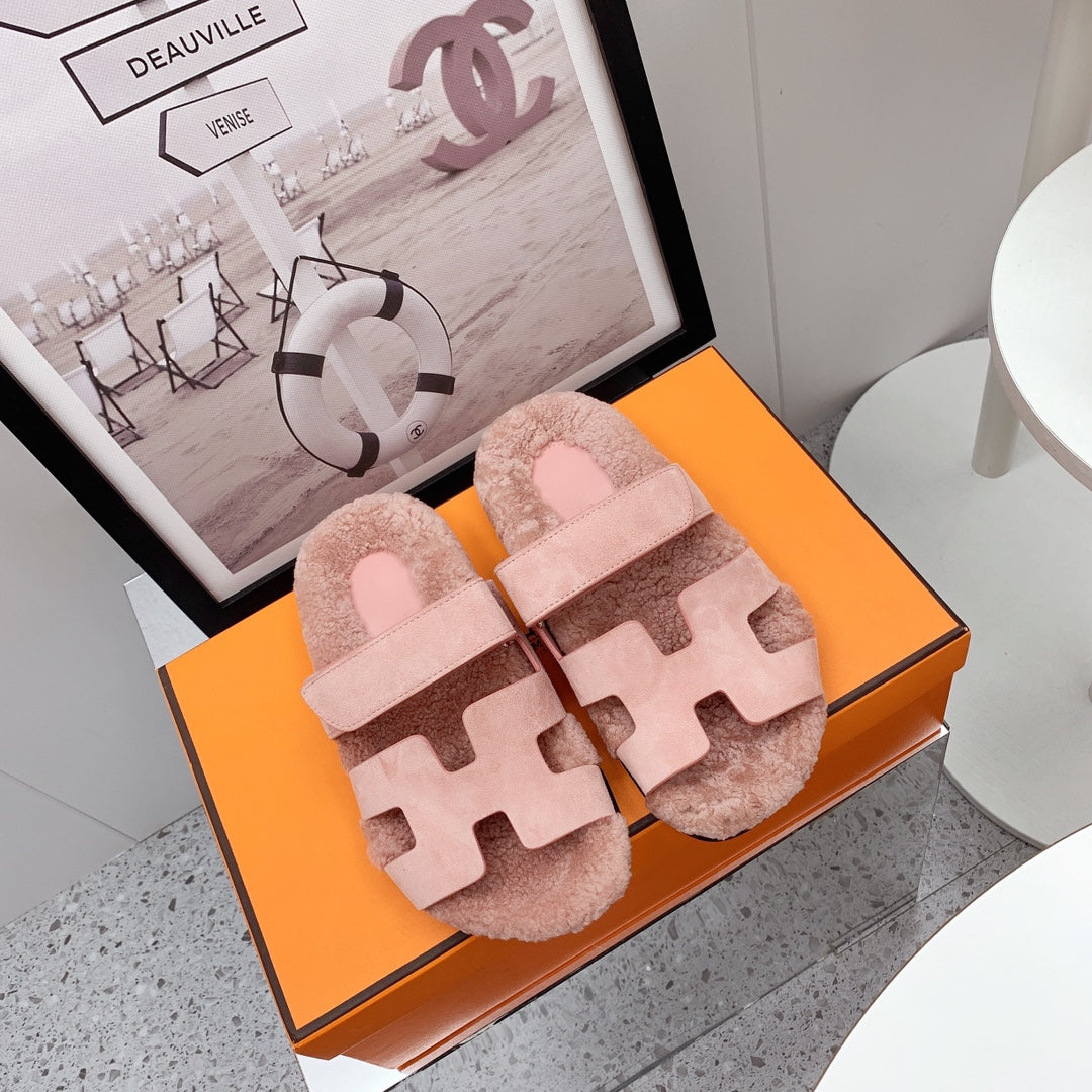 Chypre Sandal Pink shearling insole Pink Velvet leather lining