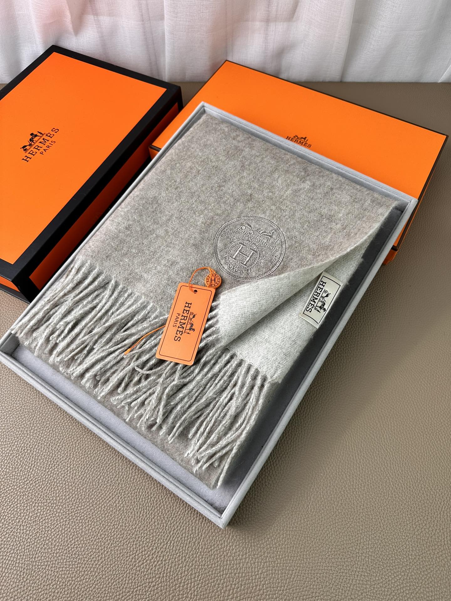 DOUBLE-FACE SCARF 200 CM IN GREY CASHMERE