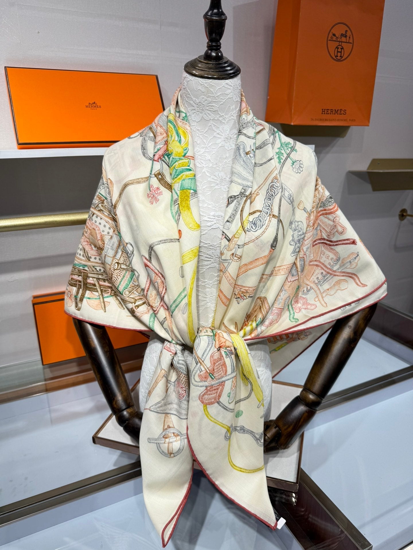HERMES 25S SCARF 136 IN SILK CASHMERE 989708