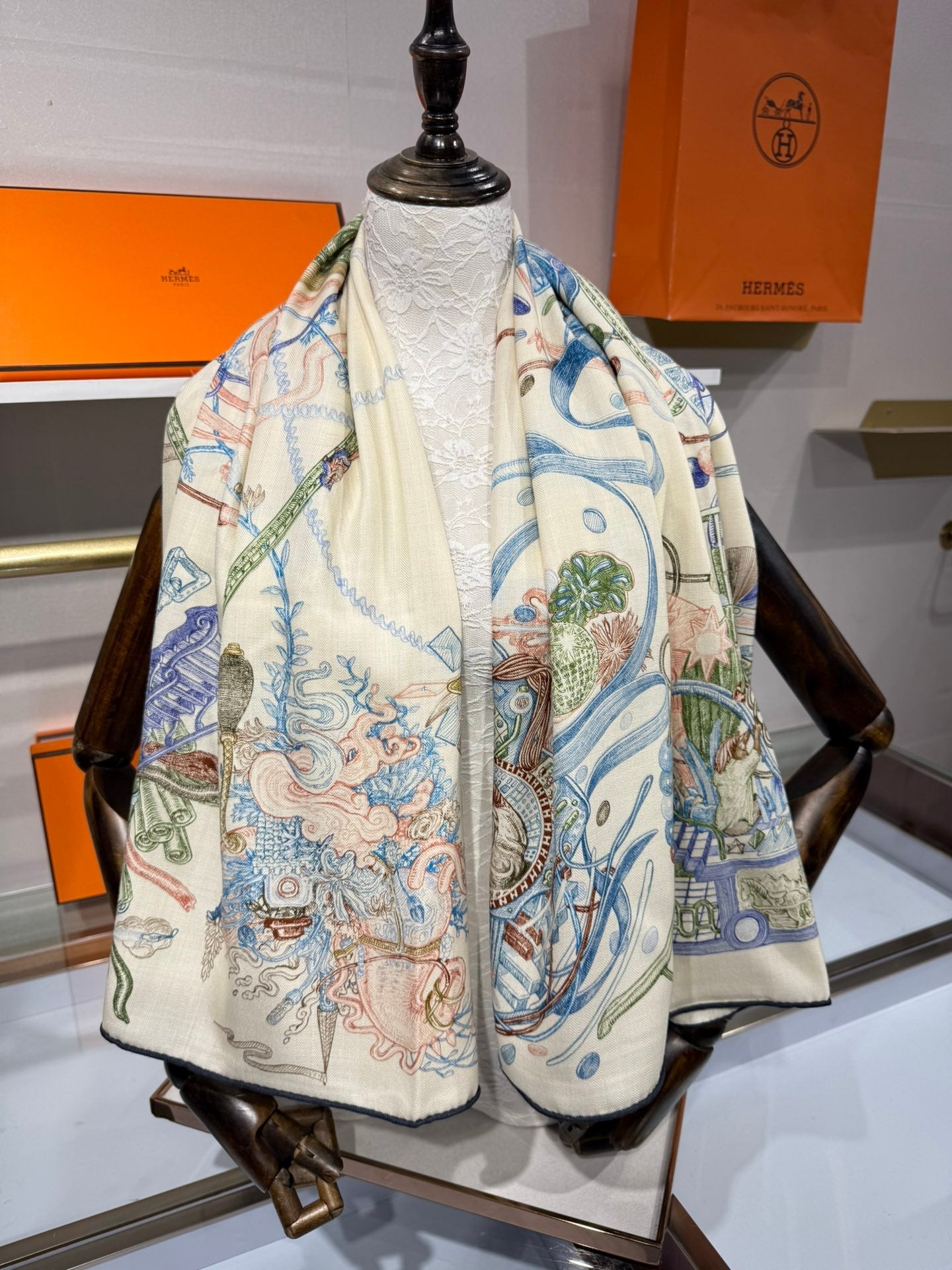 HERMES 25S SCARF 136 IN SILK CASHMERE 989710