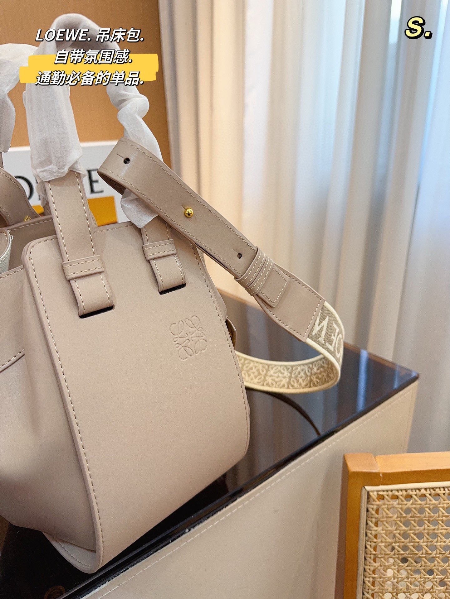 LOE 23 COMPACT HAMMOCK BAG IN SAND SATIN CALFSKIN