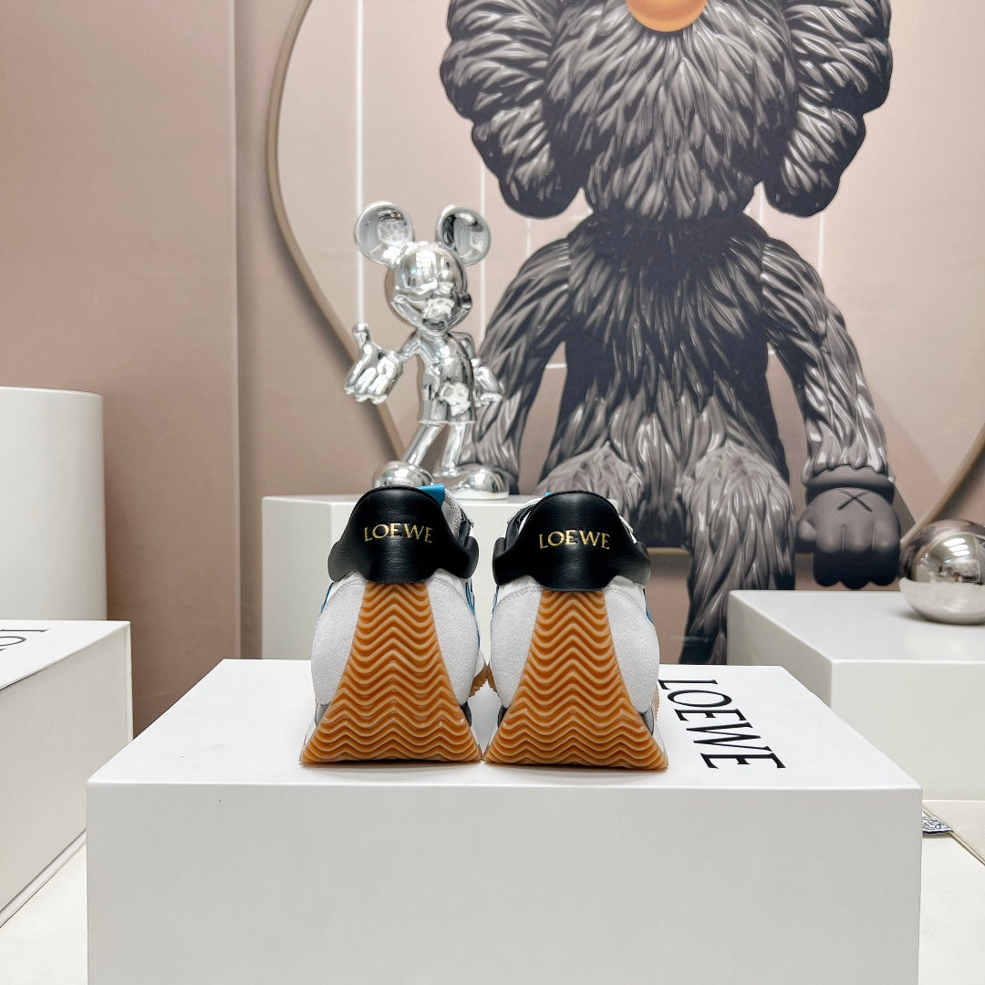FLOW RUNNER SNEAKER IN PALE GRAY MIX BLUE SUEDE AND SHEEPSKIN