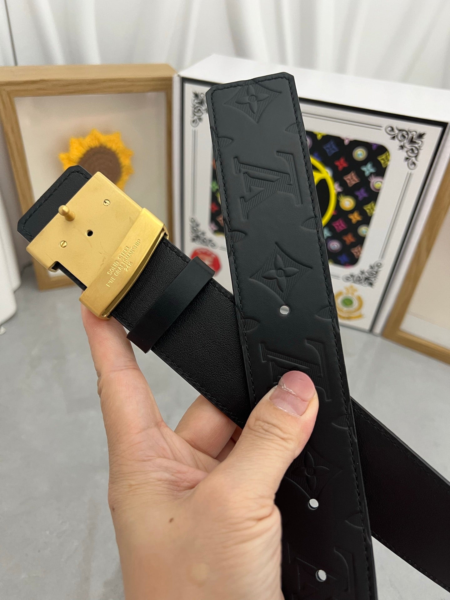 LV 25S BELT 38 MM IN BLACK CALFSKIN STAMP LOGO 593296