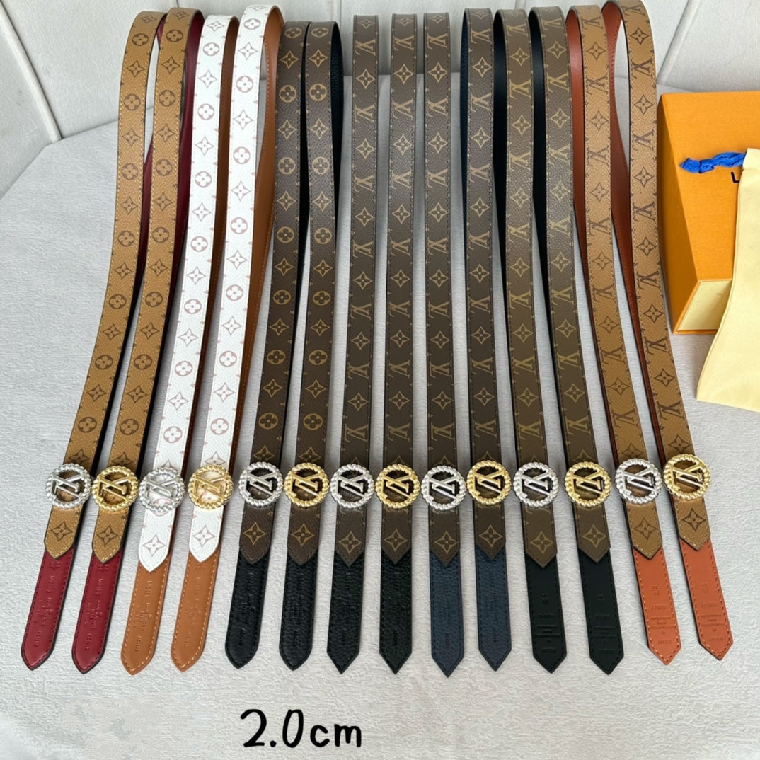 LV Circle Nautical 20mm Reversible Belt Gold Buckle Tan White lambskin