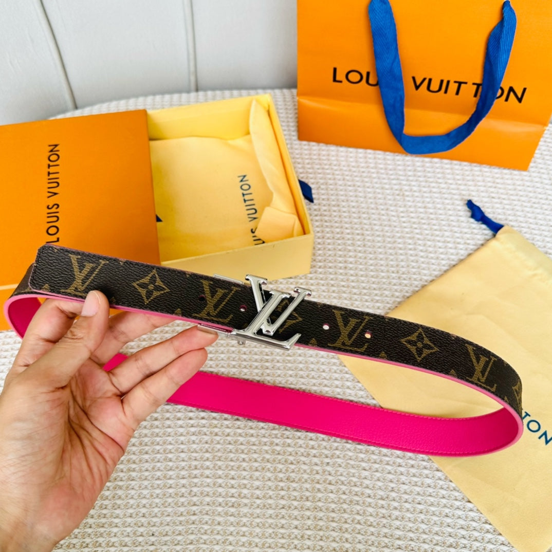 LV Initiales 30mm Reversible Belt Silver Rotating Buckle Hot Pink Brown Leather