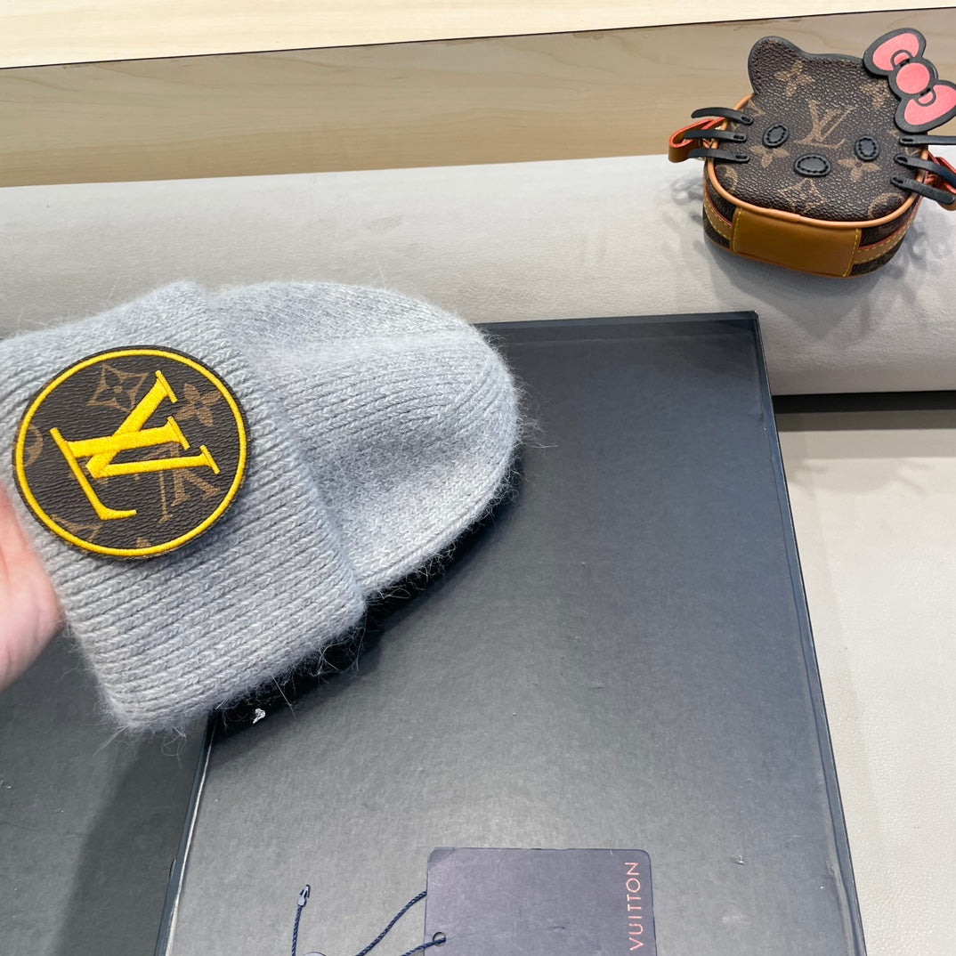 KNITTED BEANIE HAT IN LIGHT GRAY WOOL AND RABBIT FUR 417755