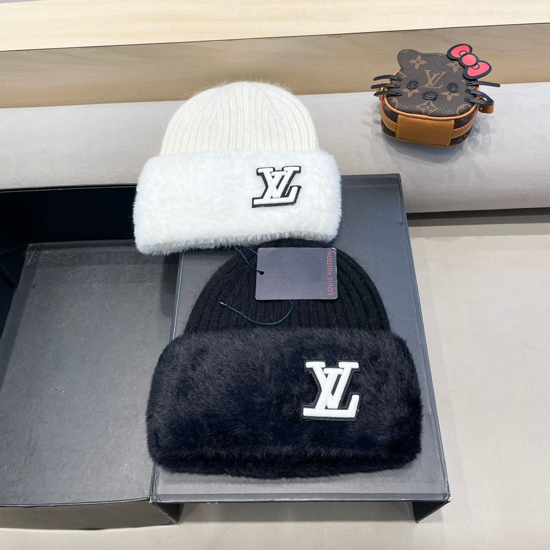 KNITTED BEANIE HAT IN WHITE WOOL AND RABBIT FUR 413354