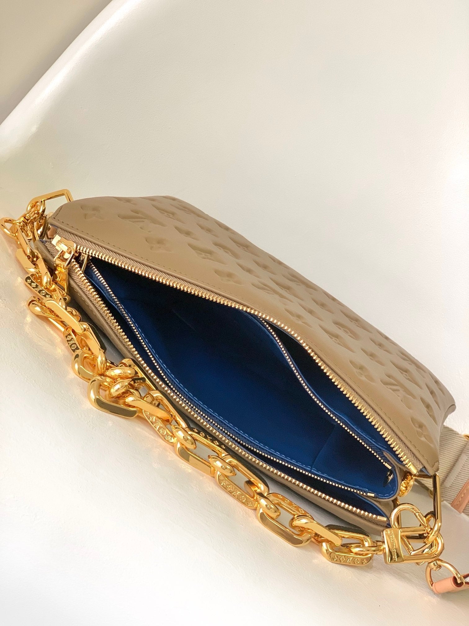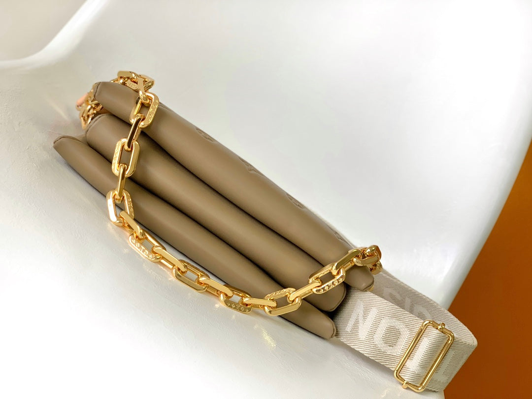 COUSSIN PM 26 IN BROWN MONOGRAM EMBOSSED LAMBSKIN GOLD HARDWARE