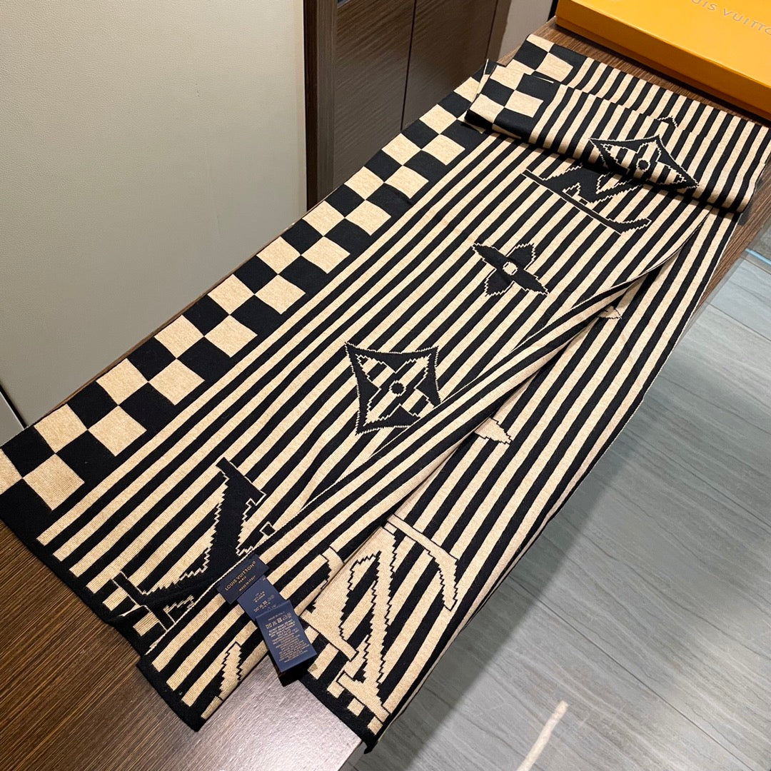 GRAPHICAL 180 CM SCARF IN TORTILLA BROWN MIX BLACK CASHMERE 388202