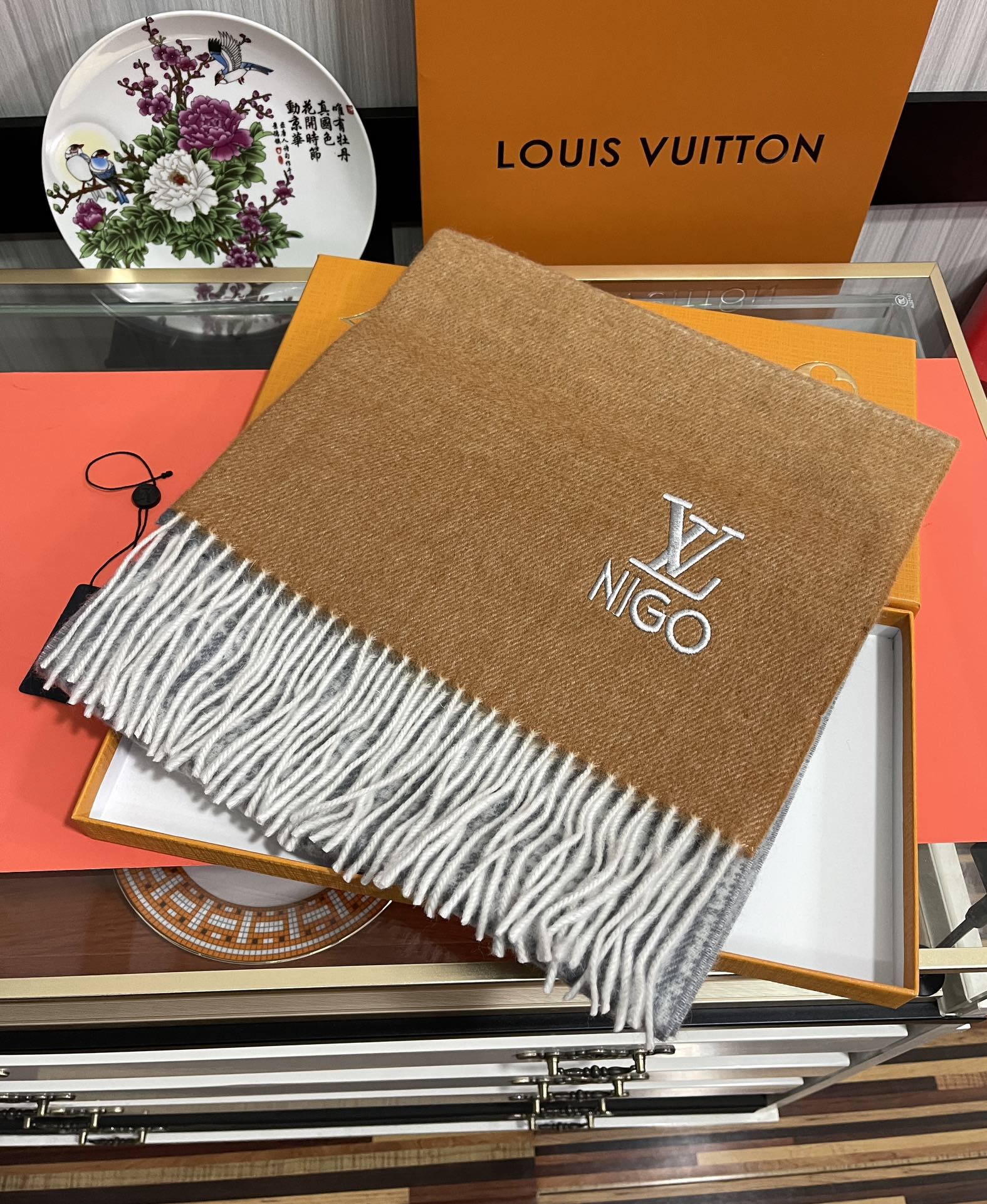 SCARF 200 CM IN BROWN MIX GREY CASHMERE 400011