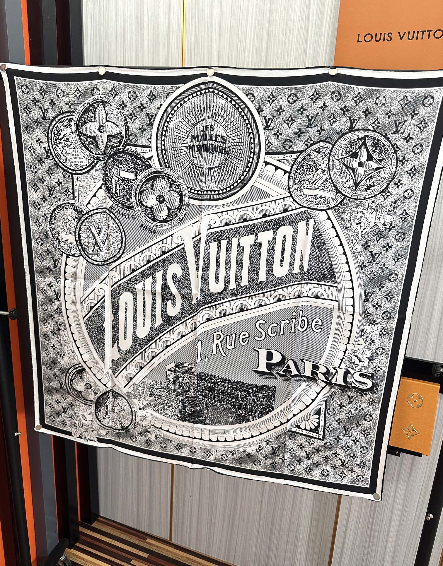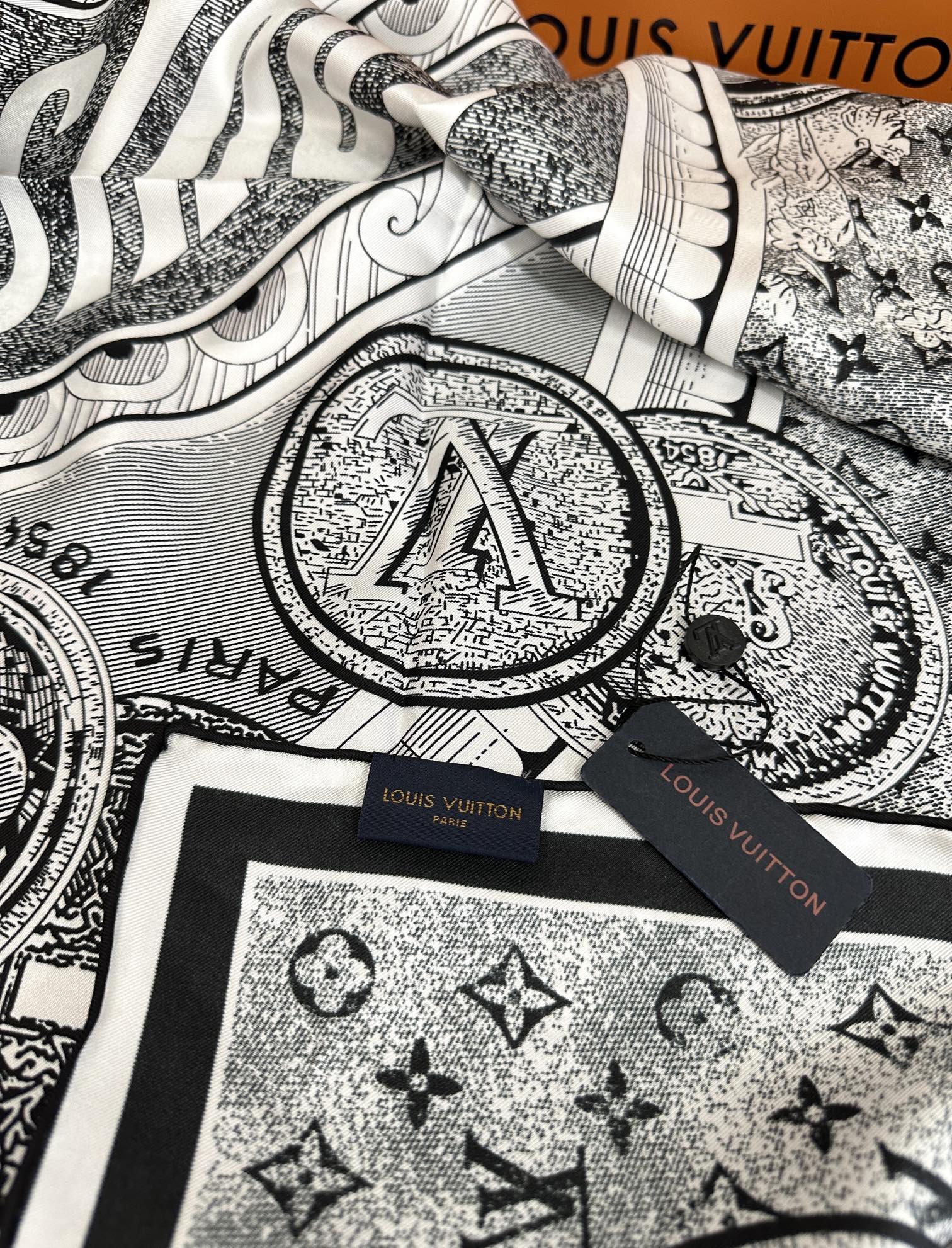 SQUARE SILK SCARF MALLES MERVEILLEUSES 90 CM BLACK MIX WHITE 399997