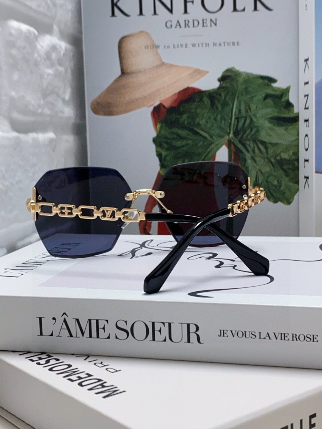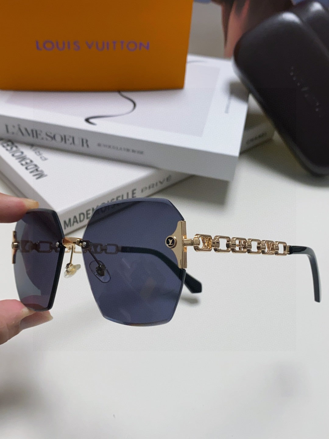 CHAIN SQUARE SUNGLASSES 570261 IN GOLD METAL BLACK LENS