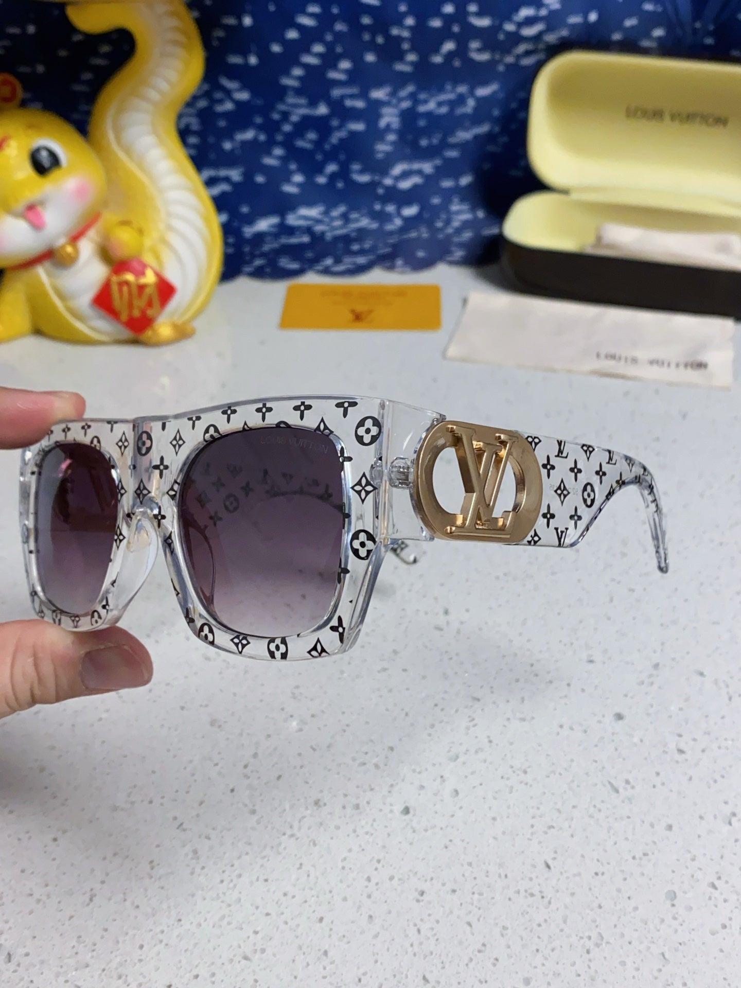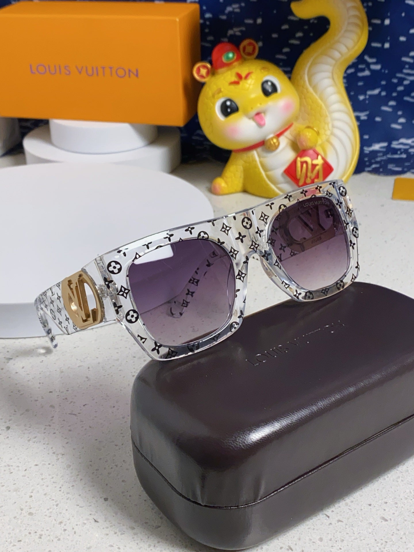LINK SQUARE SUNGLASSES 570271 IN CLEAR ACETATE MONOGRAM LOGO ON FRAME