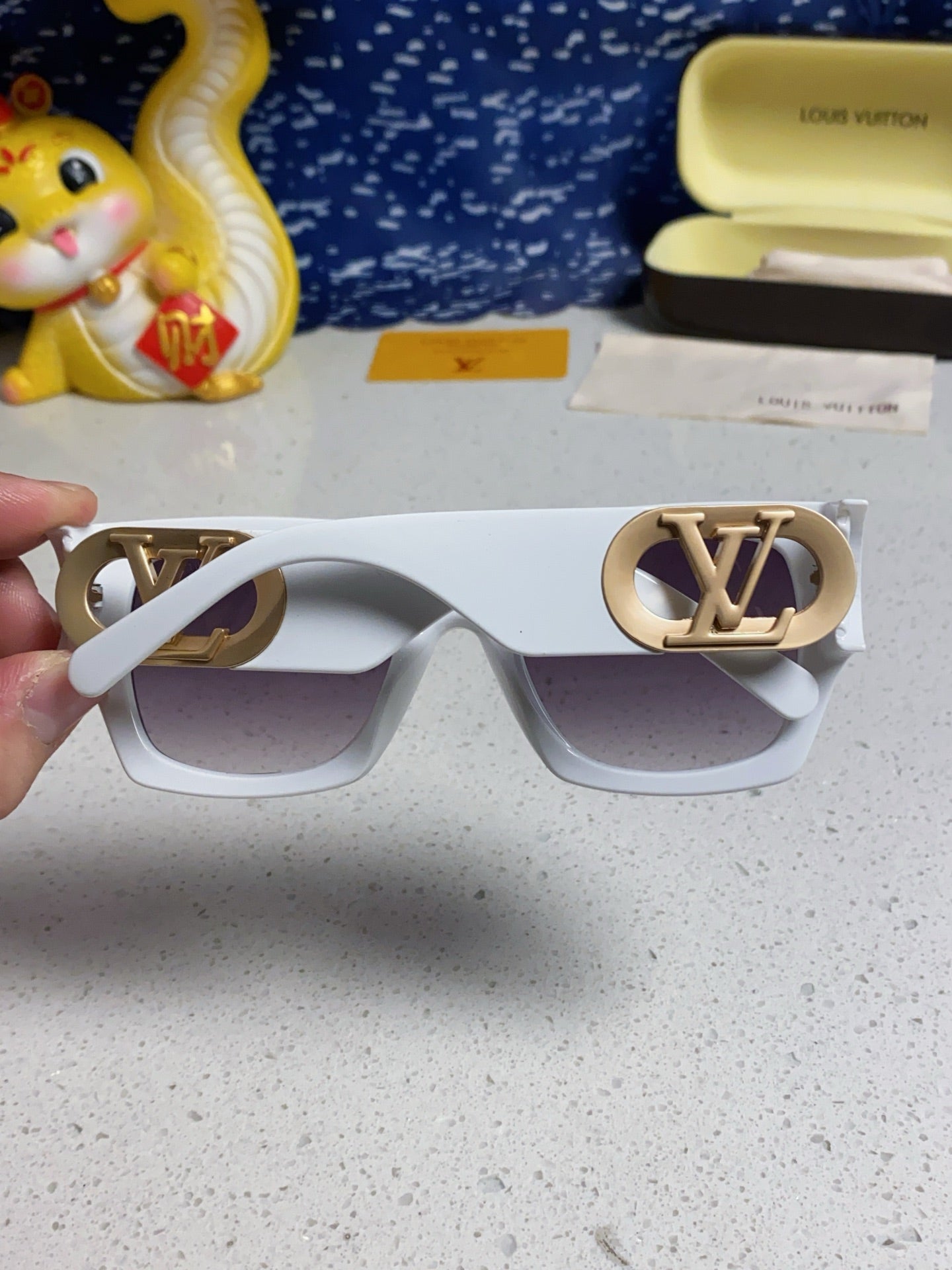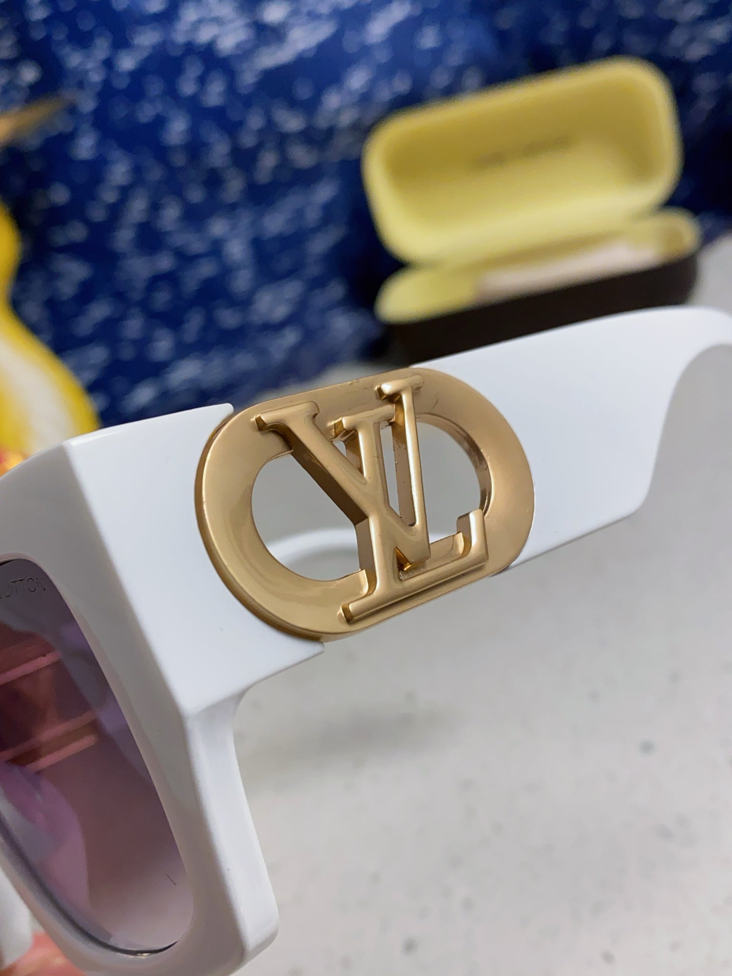 LINK SQUARE SUNGLASSES 570274 IN WHITE ACETATE GOLD LOGO