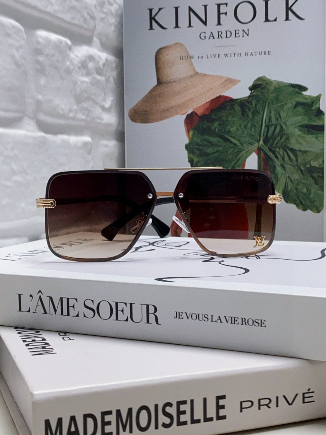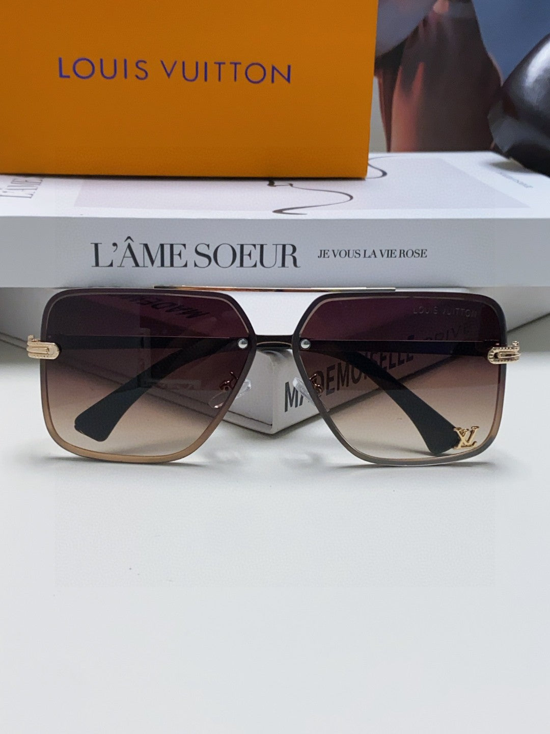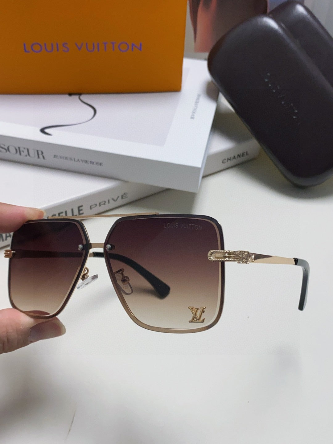 SQUARE SUNGLASSES 570264 IN GOLD METAL BROWN SMOKE LENS