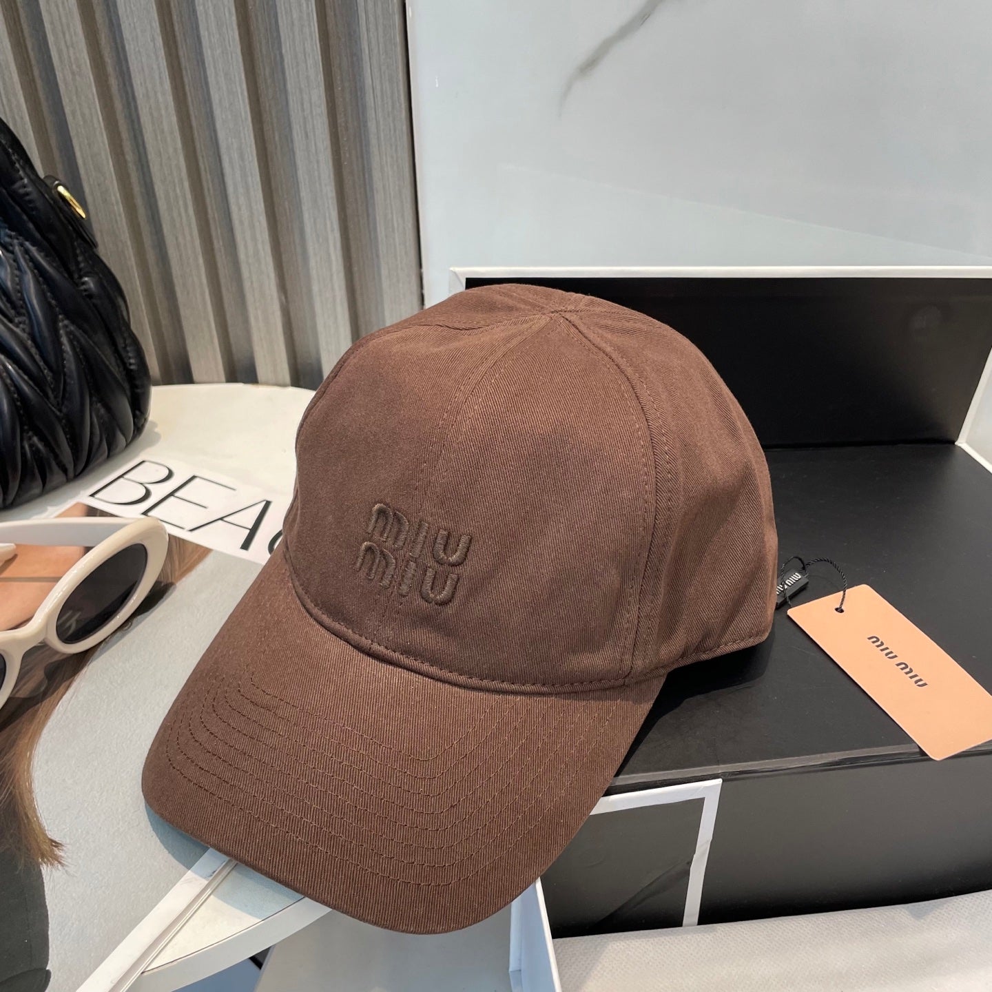 MM BASEBALL CAP IN BROWN ORANGE FABRIC BRAND EMBROIDERY