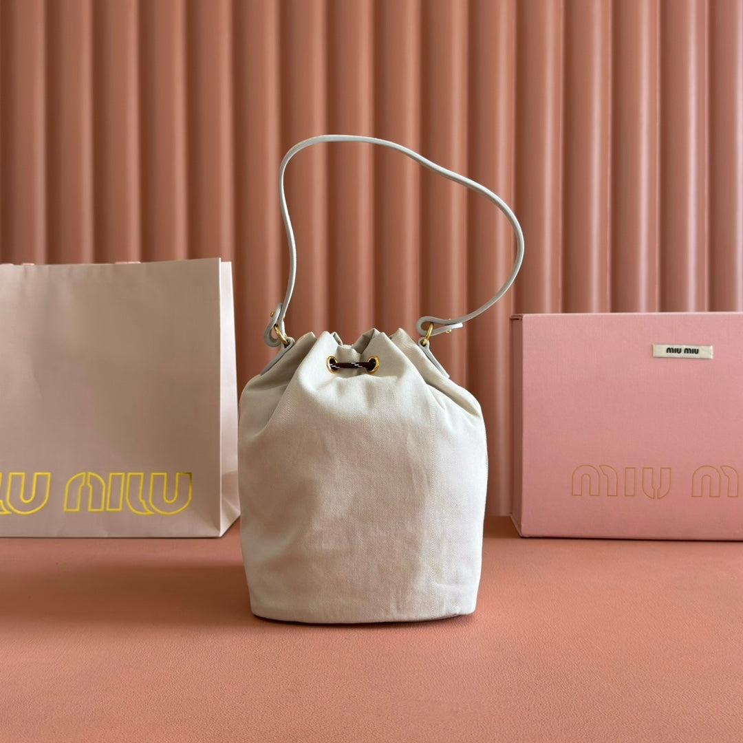 GABADINE POUCH 22.5 IN PLASTER WHITE CANVAS BROWN DRAWSTRING