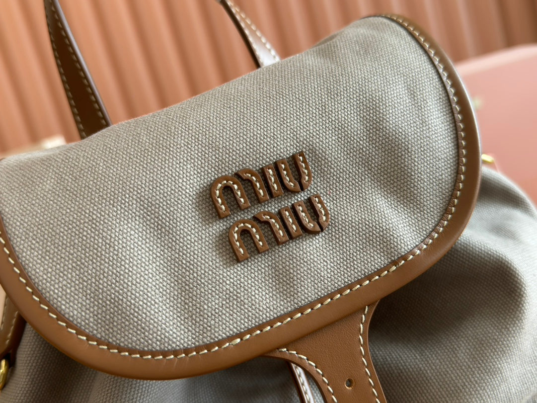 MEDIUM BACKPACK 29.5 IN GREY CANVAS BROWN CALFSKIN