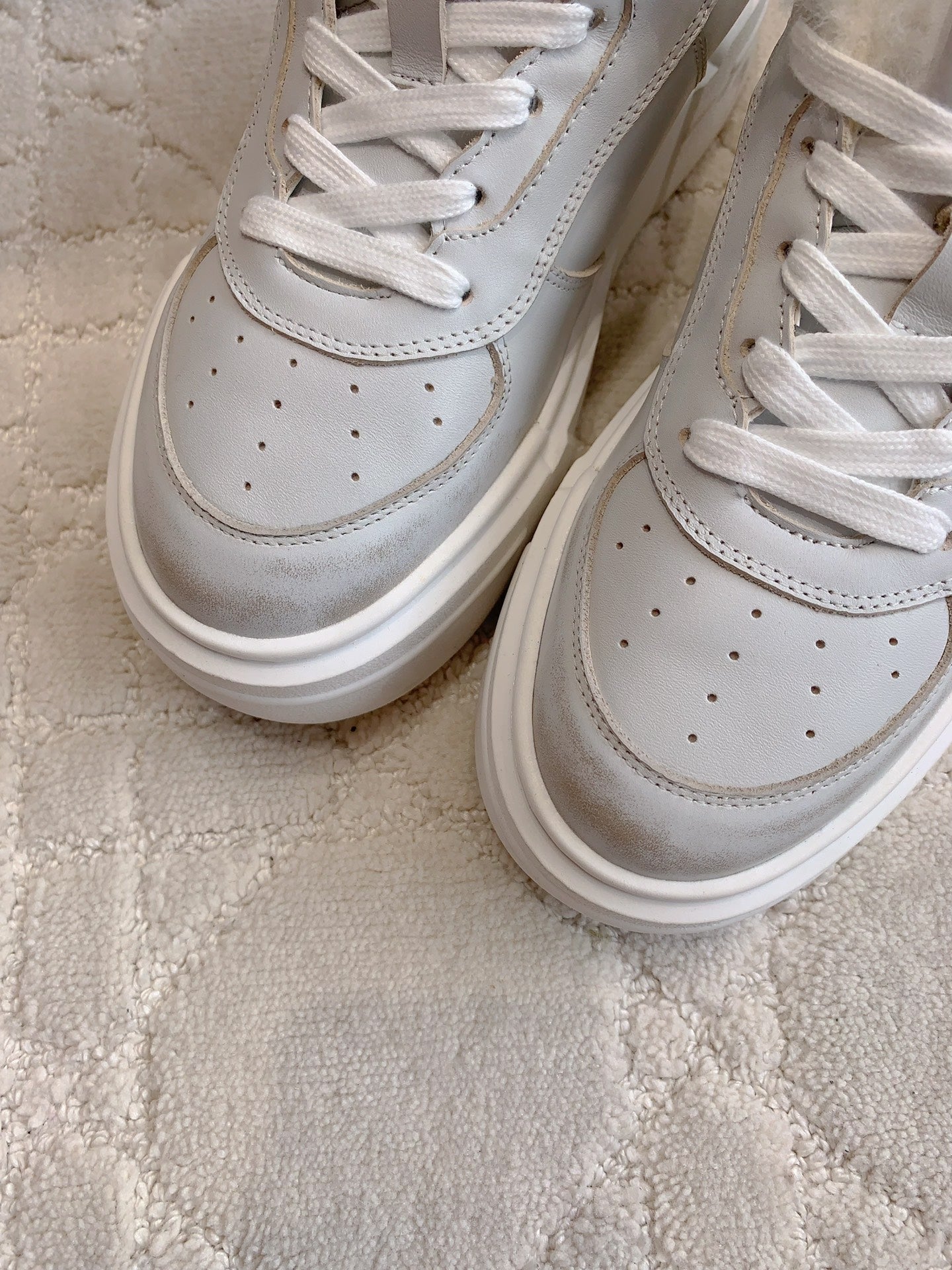 THICK SOLE SNEAKERS IN CHROME GRAY LAMBSKIN WITH RABBIT FUR LINING