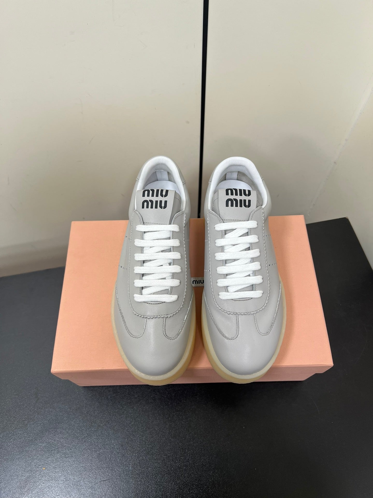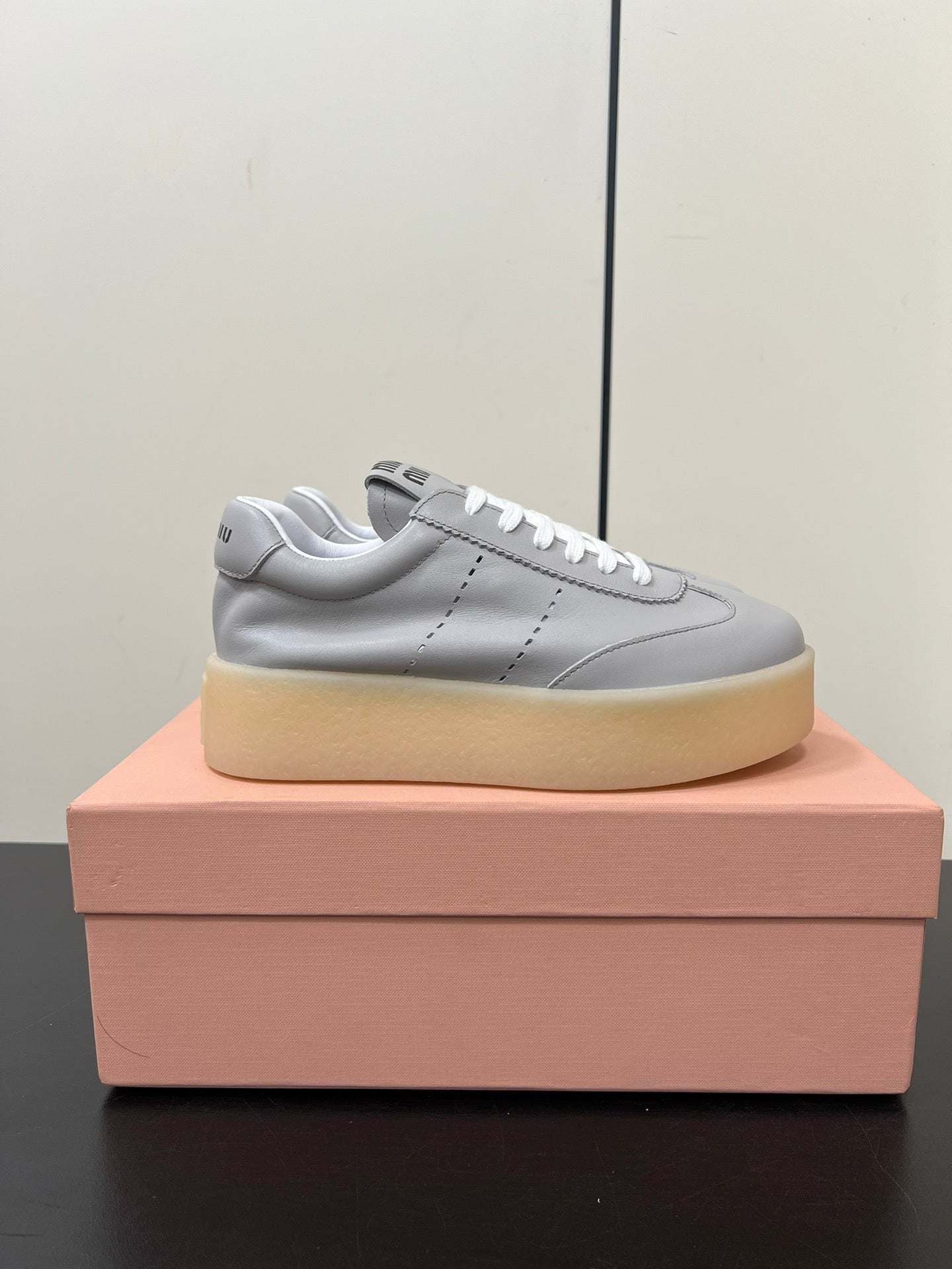 THICK-SOLED RETRO SNEAKERS IN PALE GRAY SMOOTH LAMBSKIN