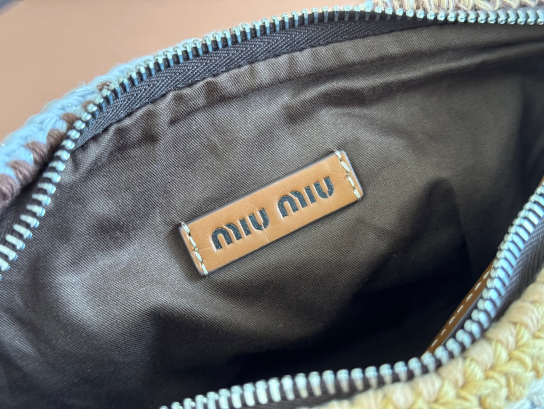 CROCHET SHOULDER BAG 25.5 NATURAL COLOUR-BLOCK WOOL WITH BROWN STRAP CALFSKIN