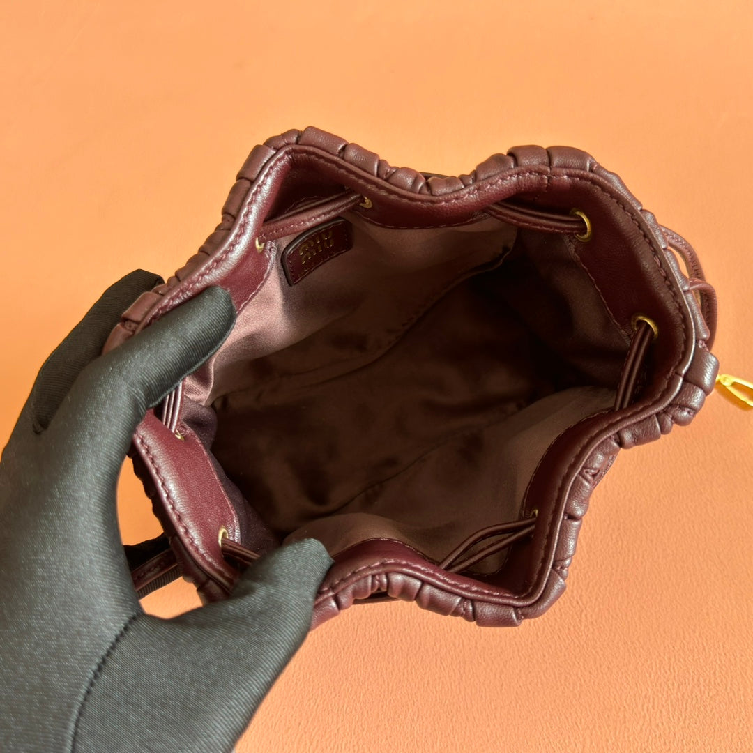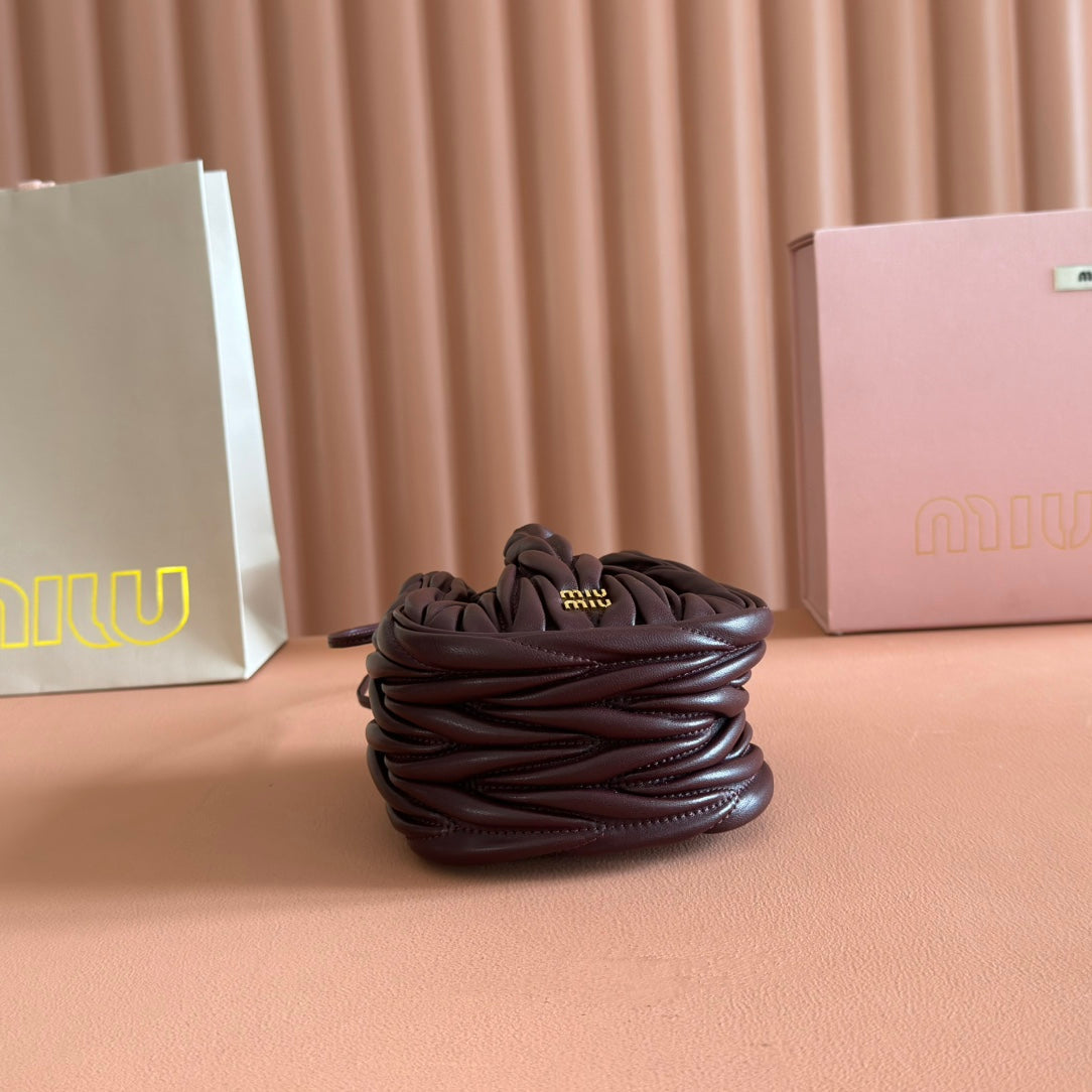 MIUMIU 26S MATELASSE POUCH BAG 16 IN DARK BROWN CALFSKIN GOLD HARDWARE