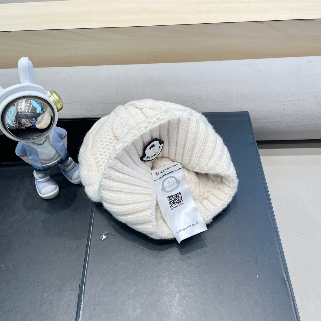 CABLE-KNIT BEANIE HAT IN BEIGE CREAM WOOL 438143