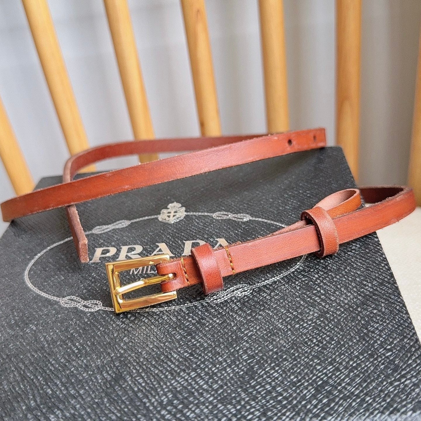 PRADA 25S BELT 10 MM IN REDDISH BROWN CALFSKIN 598369