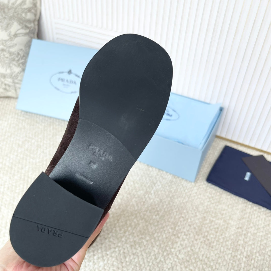 PRADA 25S HIGH-CUT BOOTS 55 MM IN DARK BROWN SUEDE